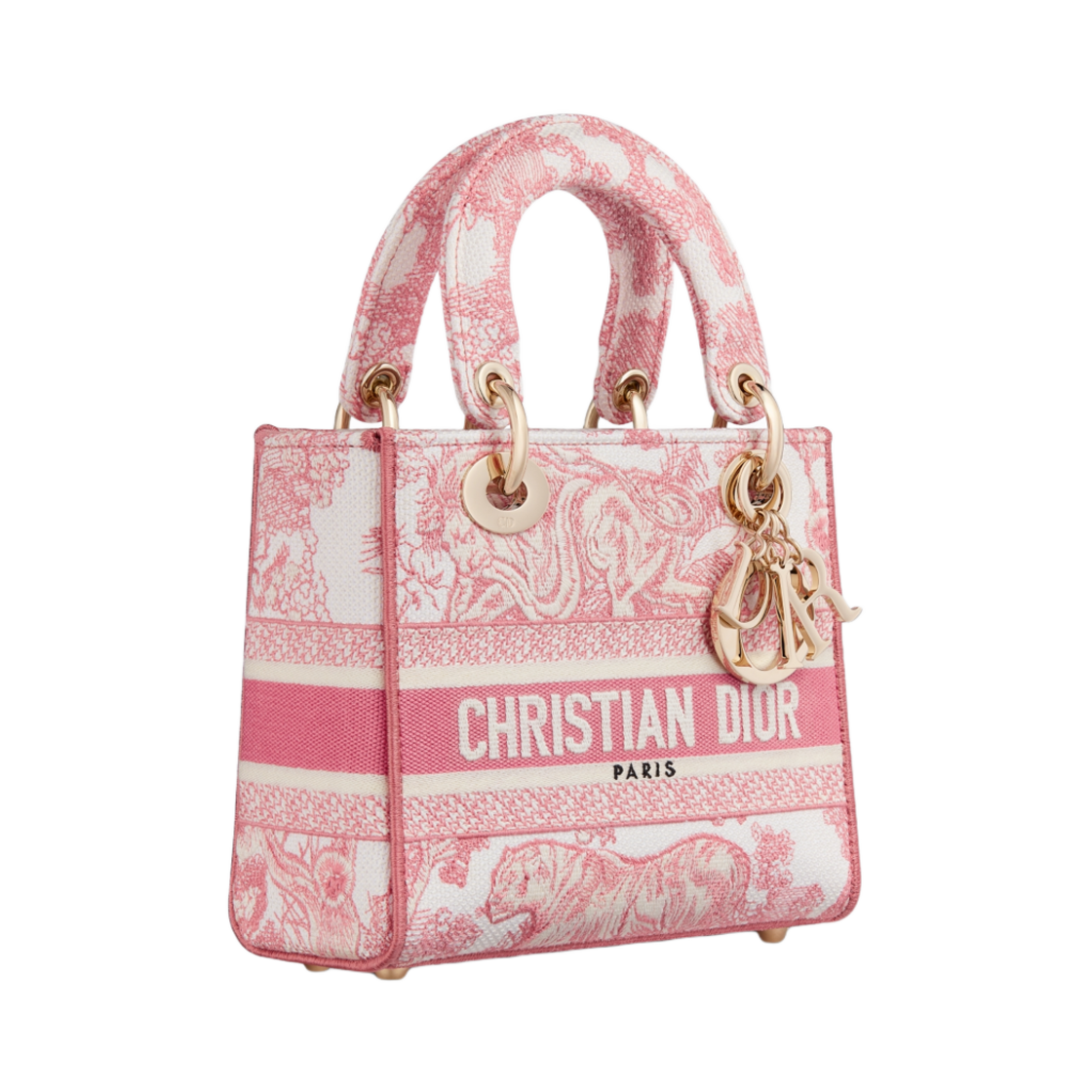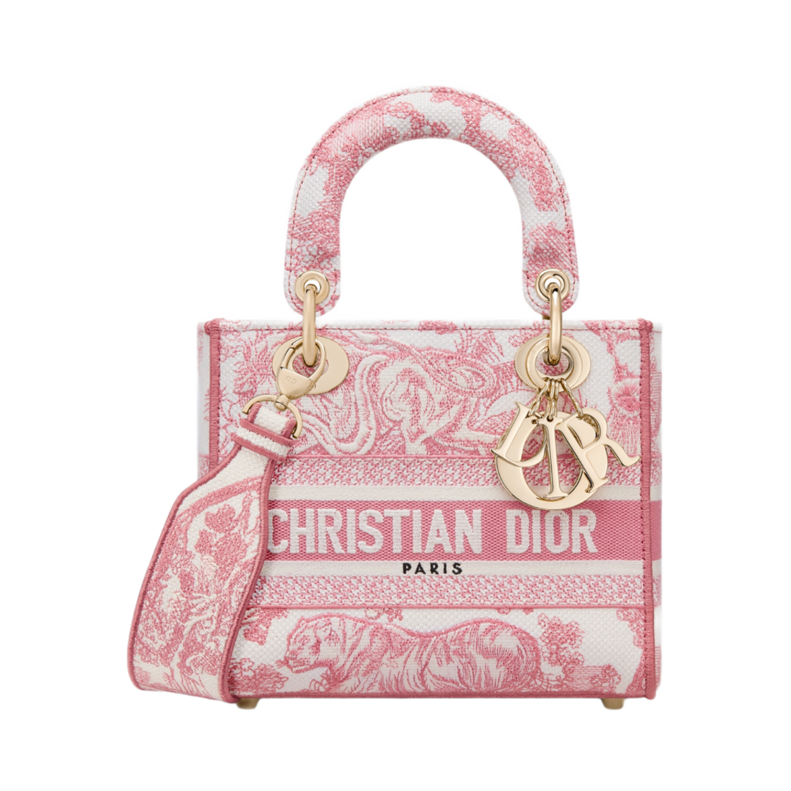 Dior Dioriviera Small Lady D-Lite Bag Toile De Jouy Sauvage Embroidery Yarrow Pink