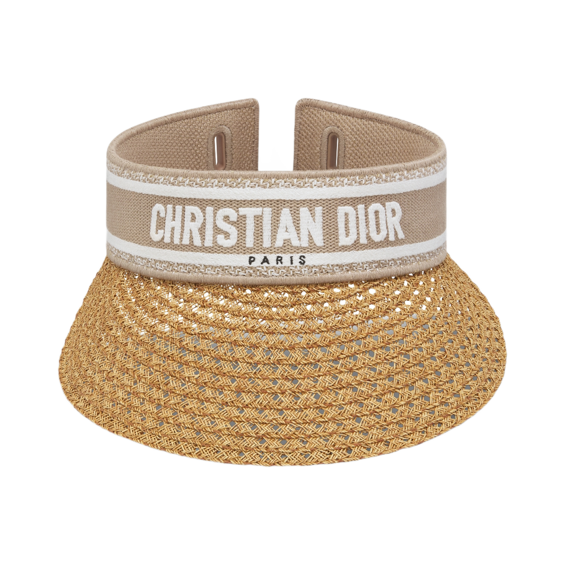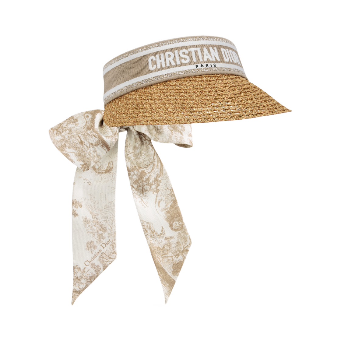 (W) Dior Dioriviera D-Ocean Visor Mitzah Embroidered Band Straw Beige White