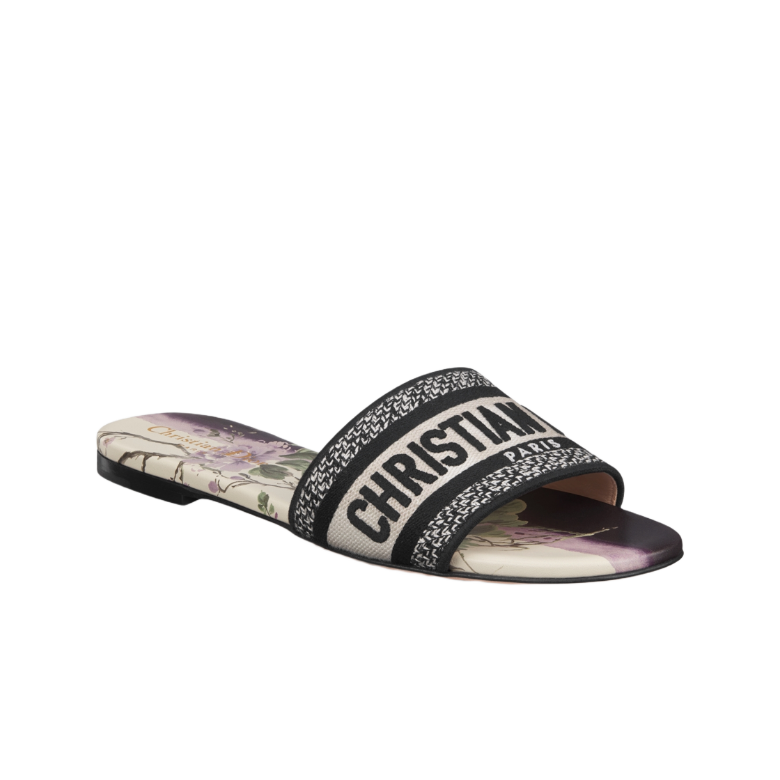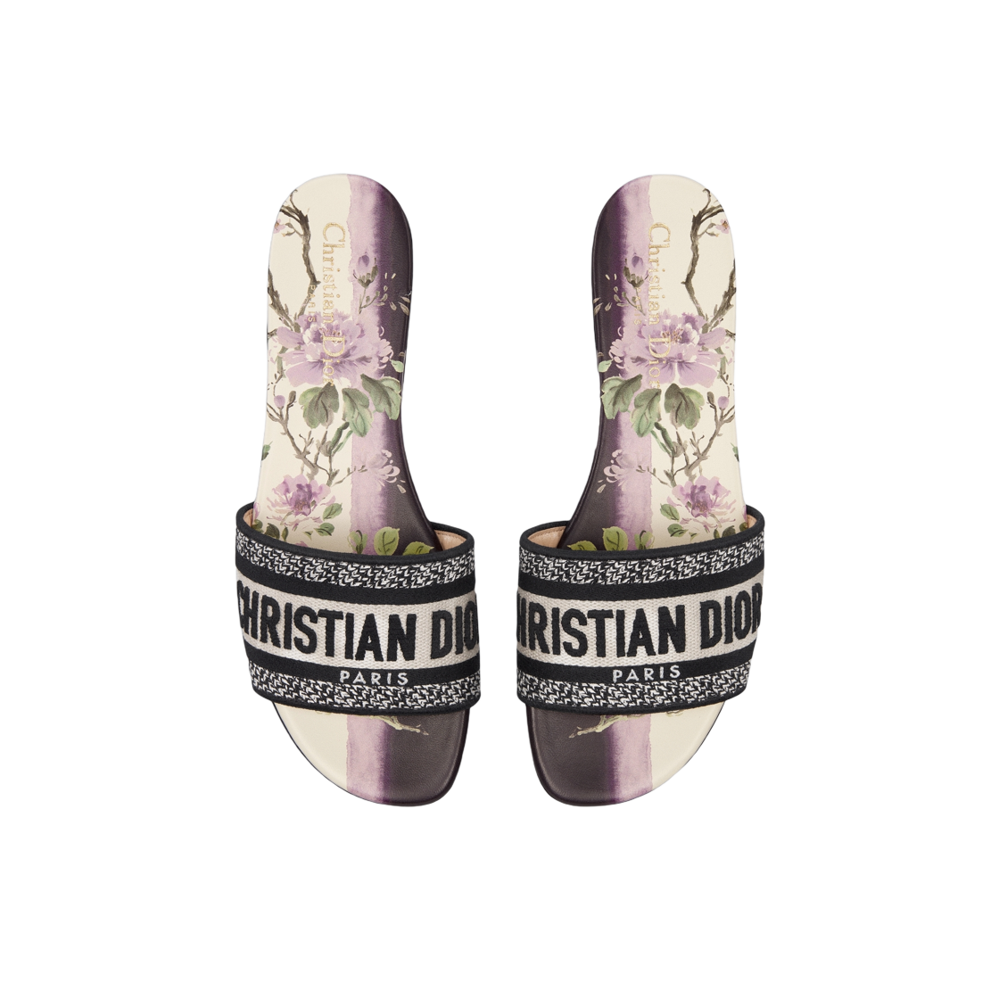 (W) Dior Dway Slide Embroidered Cotton and Dior Pivoine Motif White Purple