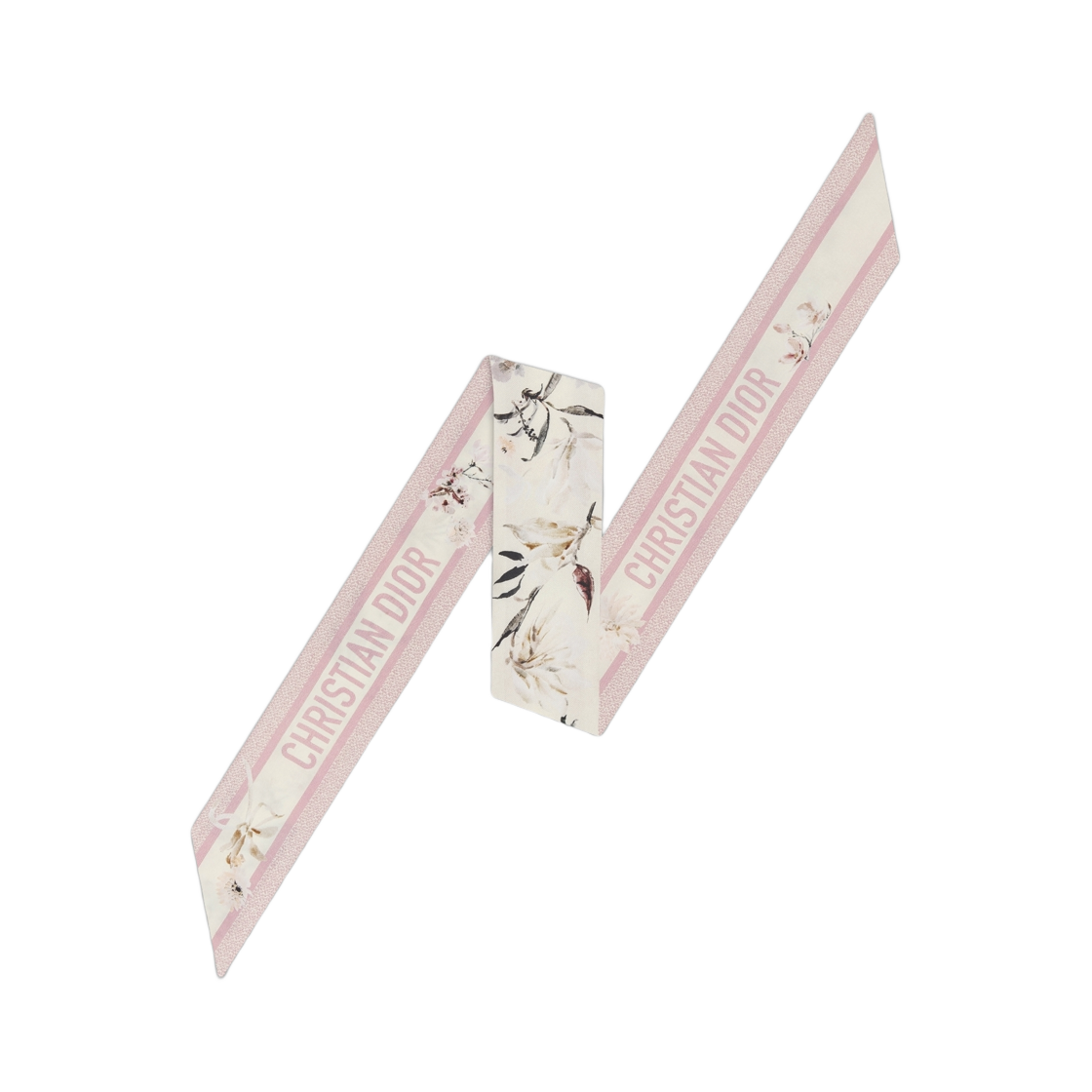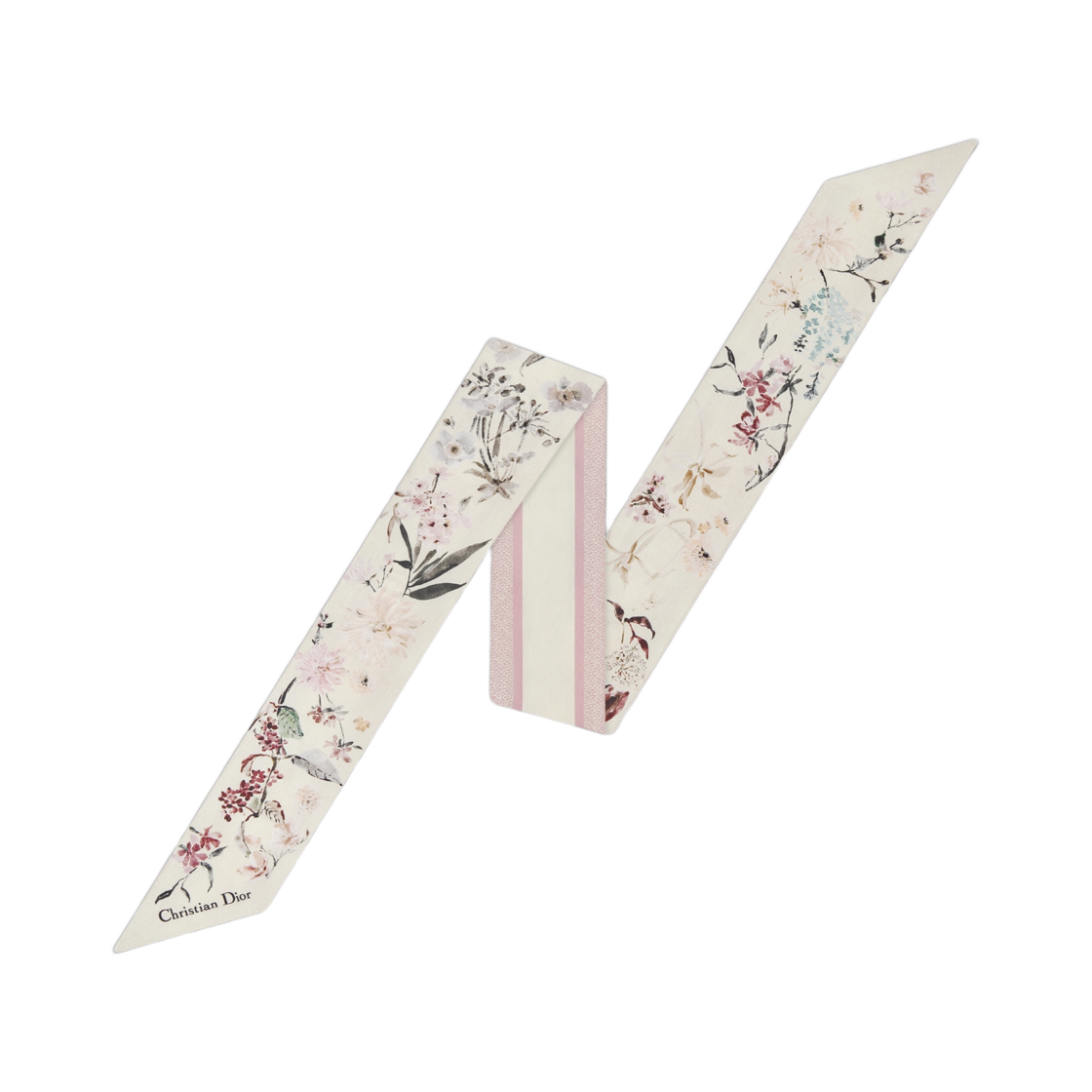 (W) Dior Millefiori Mitzah Scarf Silk Twill Ivory Pink Multicolor