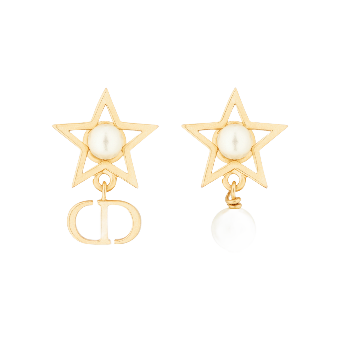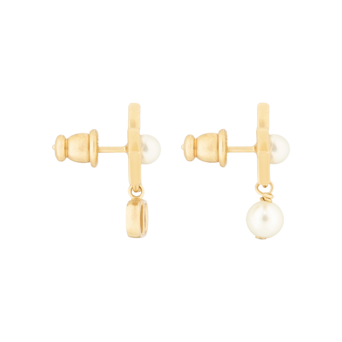 (W) Dior Petit CD Lucky Charms Earrings Gold Finish Metal White Resin Pearls