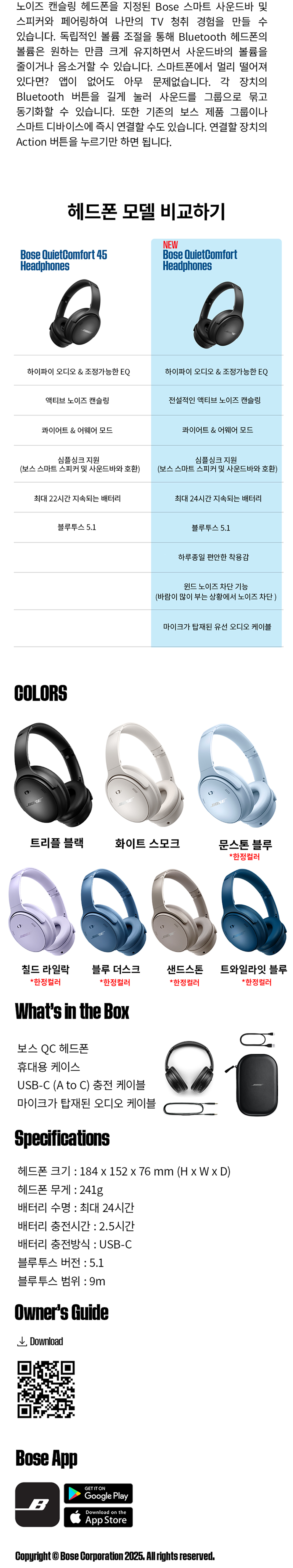 보스 QC 헤드폰 트와일라잇 블루