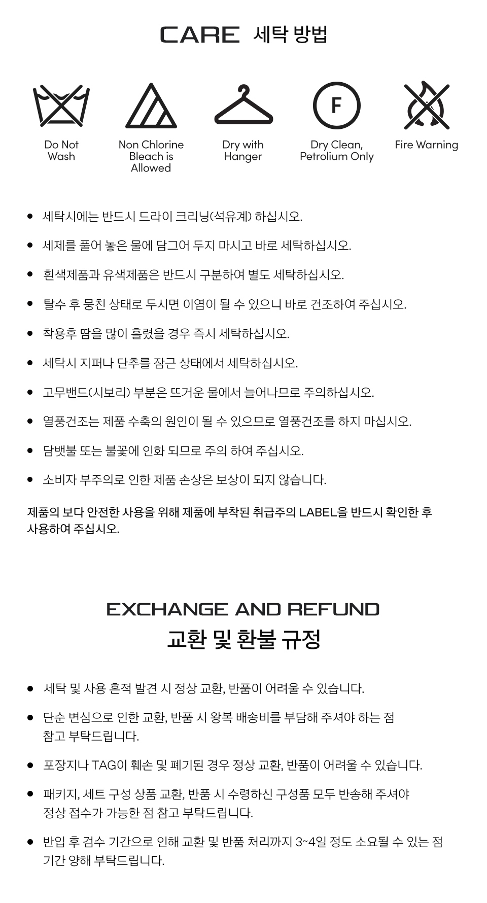 교환 및 반품 안내