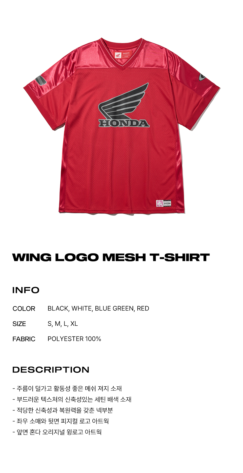 혼다 오리지널 윙 로고 메쉬 티셔츠 레드