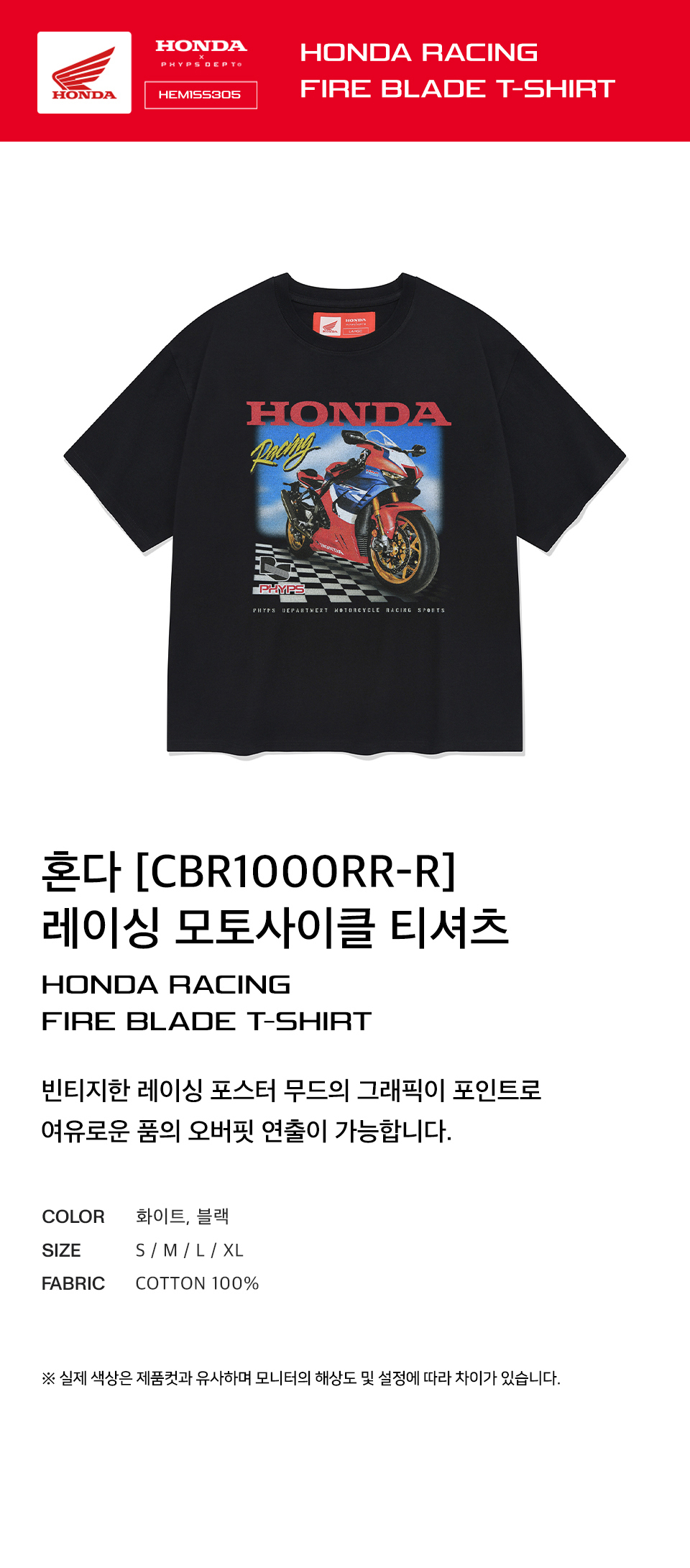 혼다 레이싱 파이어 블레이드 티셔츠 블랙