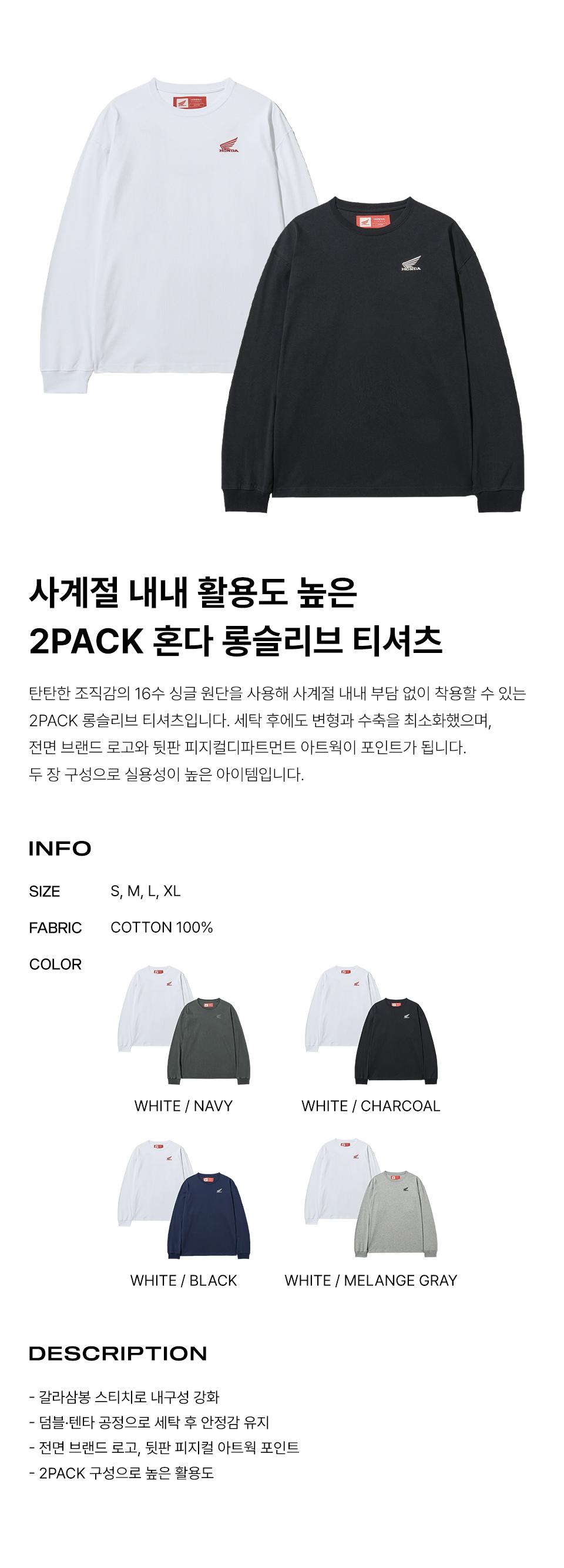 혼다 2Pack 오리지널 윙 로고 롱슬리브 화이트/블랙