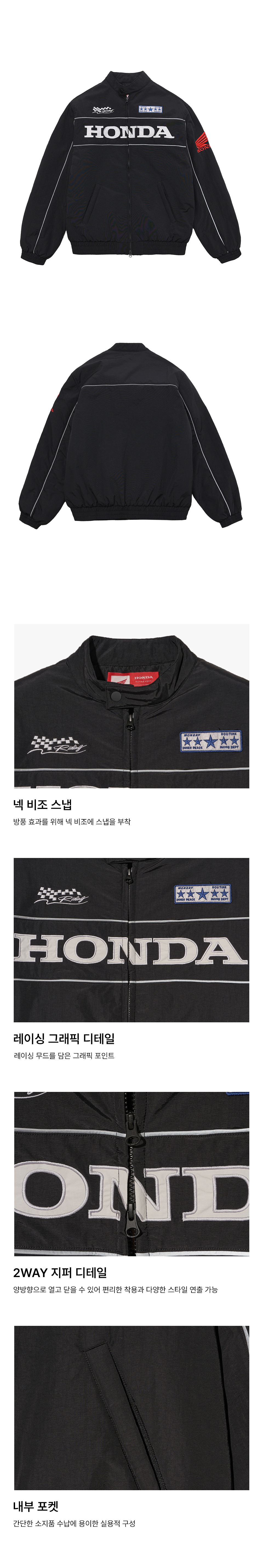 혼다 파이핑 모터사이클 블루종 자켓 블랙