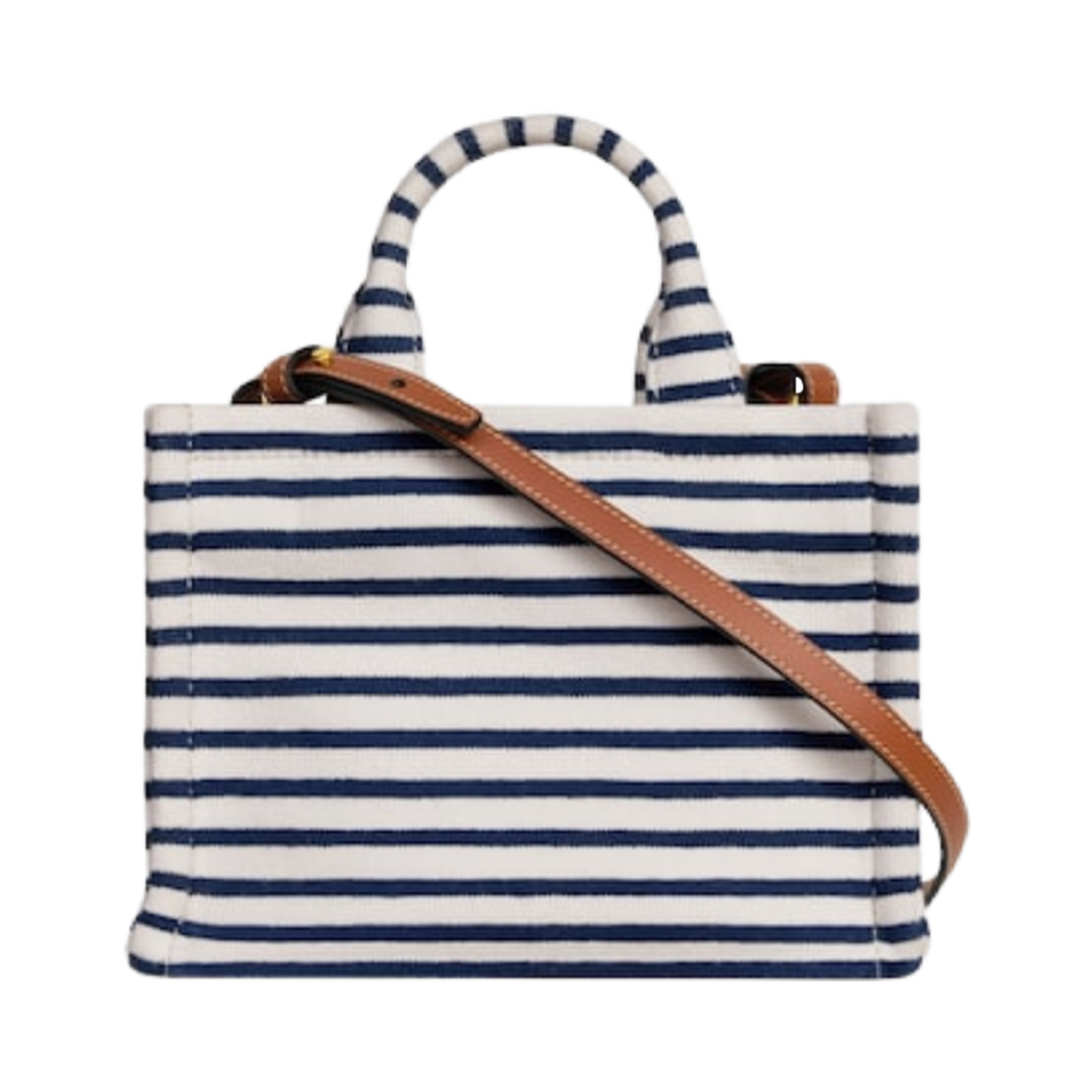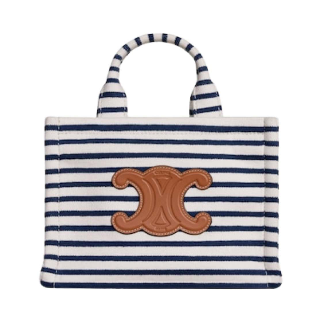 셀린느 스트라이프 텍스타일 카프스킨 미니 카바스 타이스 토트백 네이비 탄