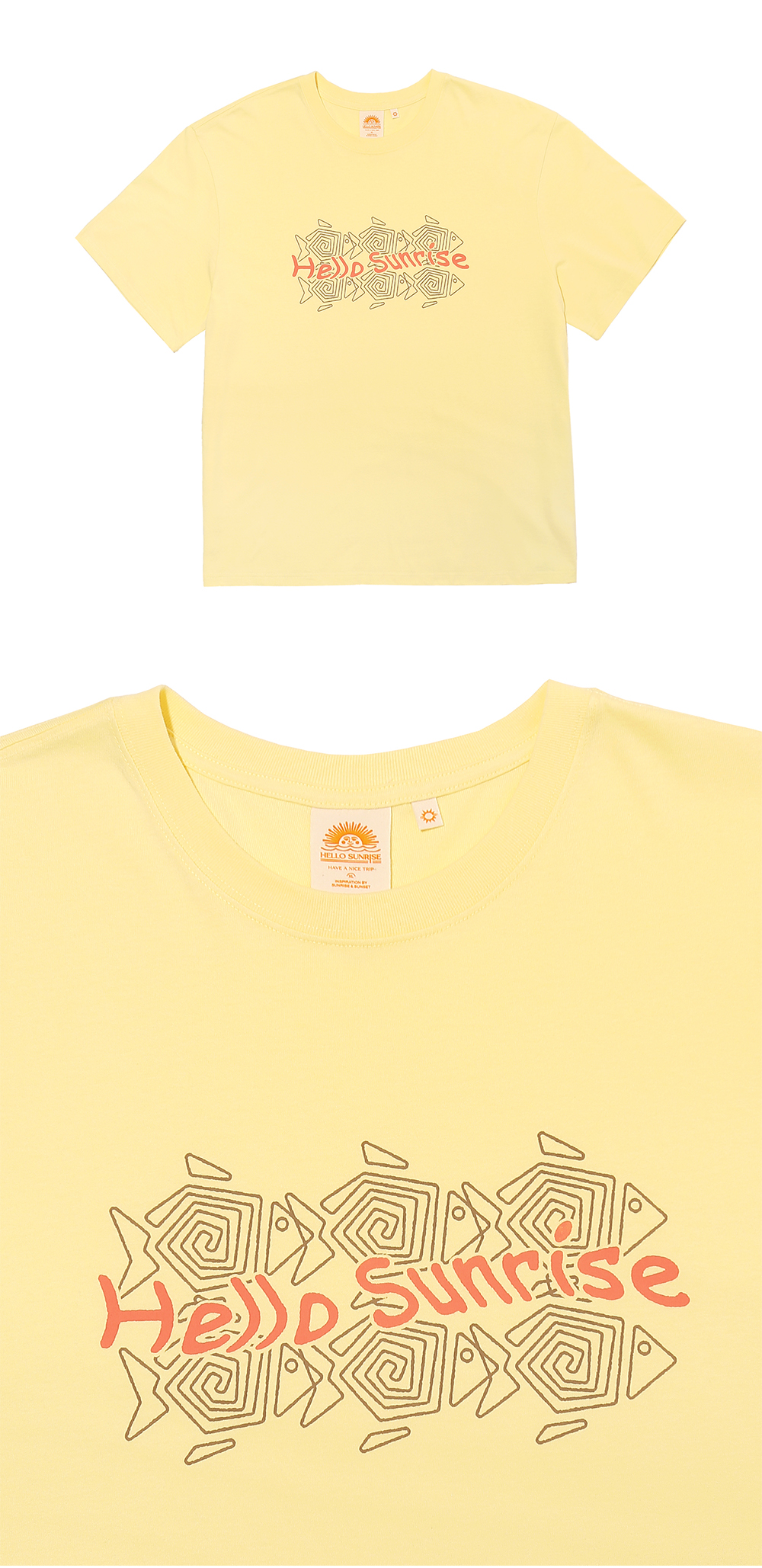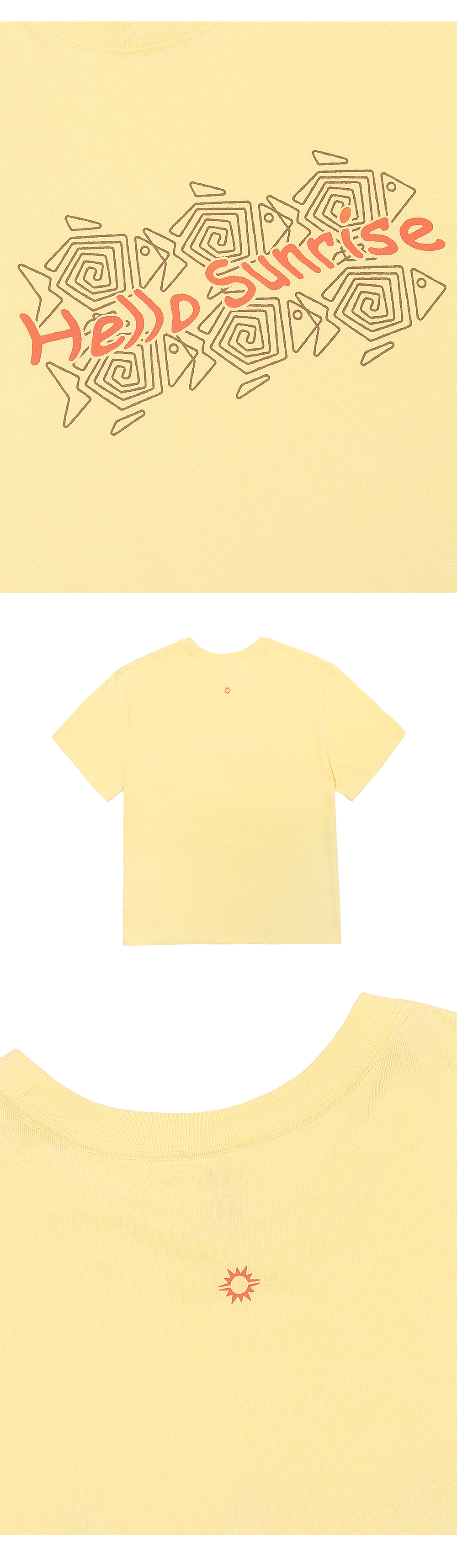 Hello Sunrise 스탠다드 핏의 남녀 공용의 반팔 티셔츠입니다. - 전면 헬로선라이즈 Six Fish 그래픽 - 후면 헬로선라이즈 심볼 그래픽 - 이전보다 여유로워진 사이즈와 착용감 * 측정 기준에 따라 1-2cm의 차이가 있을 수 있습니다. * Cotton 100% Made in Korea