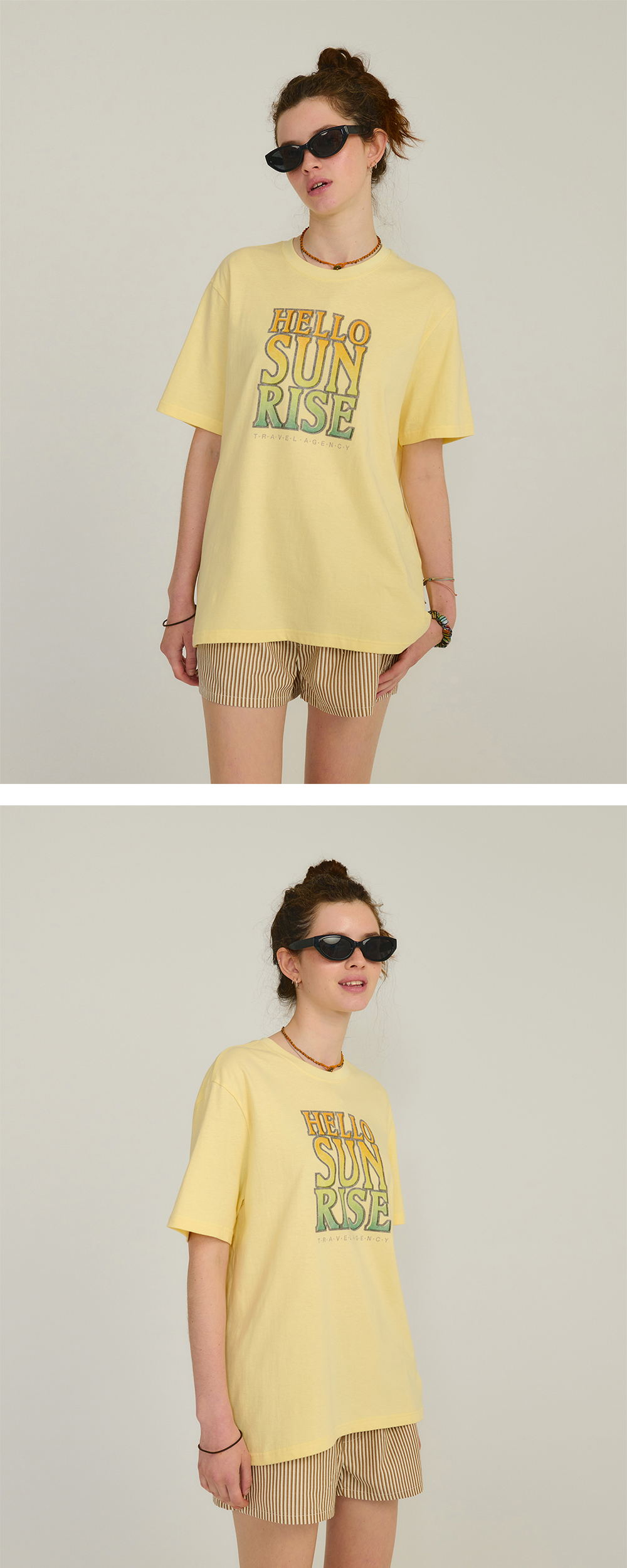 헬로선라이즈 그레이디언트 타이포 티 라이트 옐로우