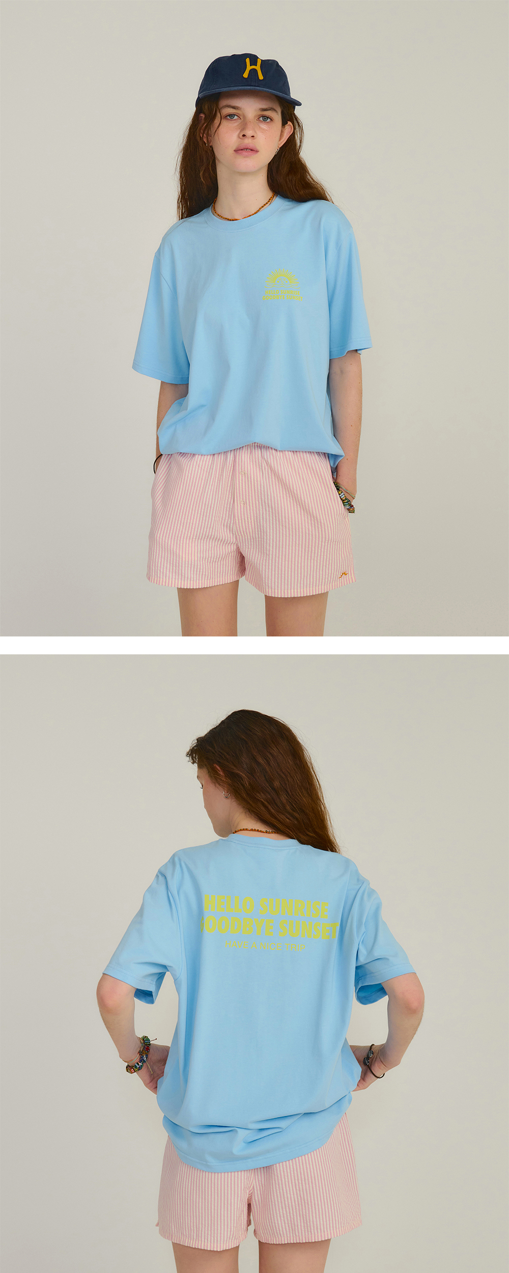 Hello Sunrise 스탠다드 핏의 남녀 공용의 반팔 티셔츠입니다. - 전면 헬로선라이즈 미니 90'S 로고 그래픽 - 후면 헬로선라이즈 90'S 로고 그래픽 - 이전보다 여유로워진 사이즈와 착용감 * Model : 177cm / Size : Medium * 측정 기준에 따라 1-2cm의 차이가 있을 수 있습니다. * Cotton 100% Made in Korea