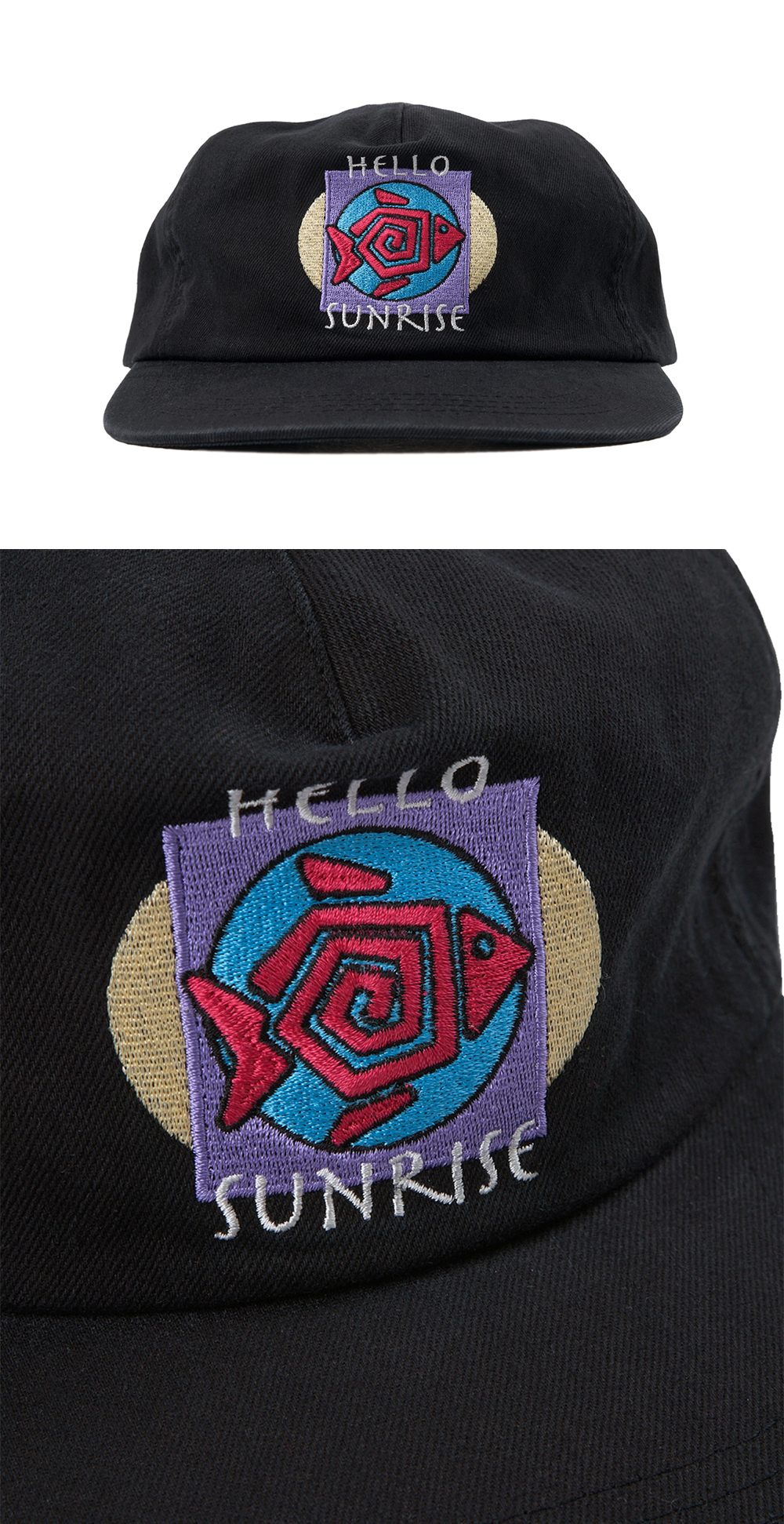 Hello Sunrise Fish Logo Relaxed Fit 5Panel Cap Black
