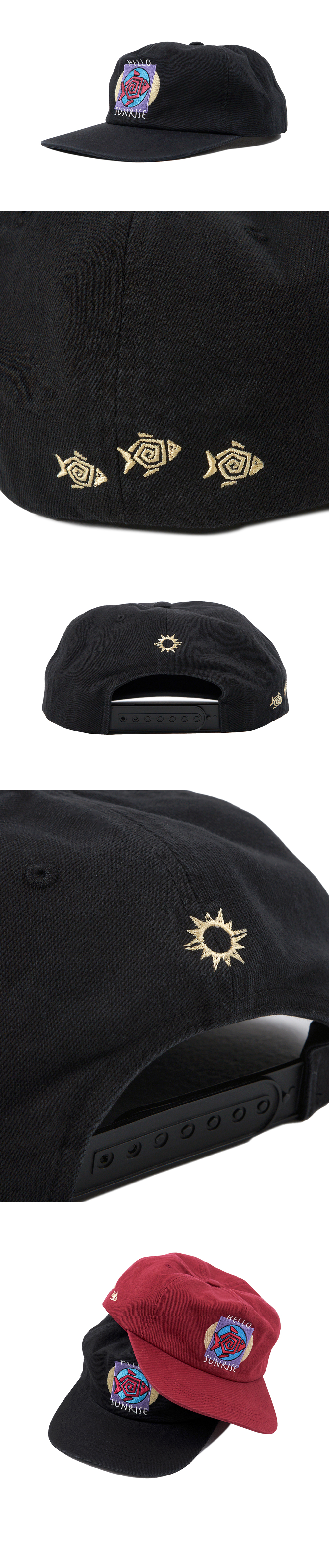 헬로선라이즈 Fish 그래픽이 자수로 들어간 5패널 캡입니다. - 앞판 Fish 그래픽 자수처리 - 워싱 가공으로 빈티지한 무드 - 사이즈 조절 스냅 - 릴렉스 핏으로 넉넉한 착용감 - 뒷판 Hello Sunrise 심볼 자수 처리 *모자의 챙을 개인적인 취향에 따라 원하시는 각도로 구부려 착용하시길 권장 드립니다. *모자의 챙이 워싱과정으로 살짝 삐뚤어져보이는 현상은 제품의 불량이 아니므로 반품사유가 되지 않습니다. * Cotton 100% Made in Korea