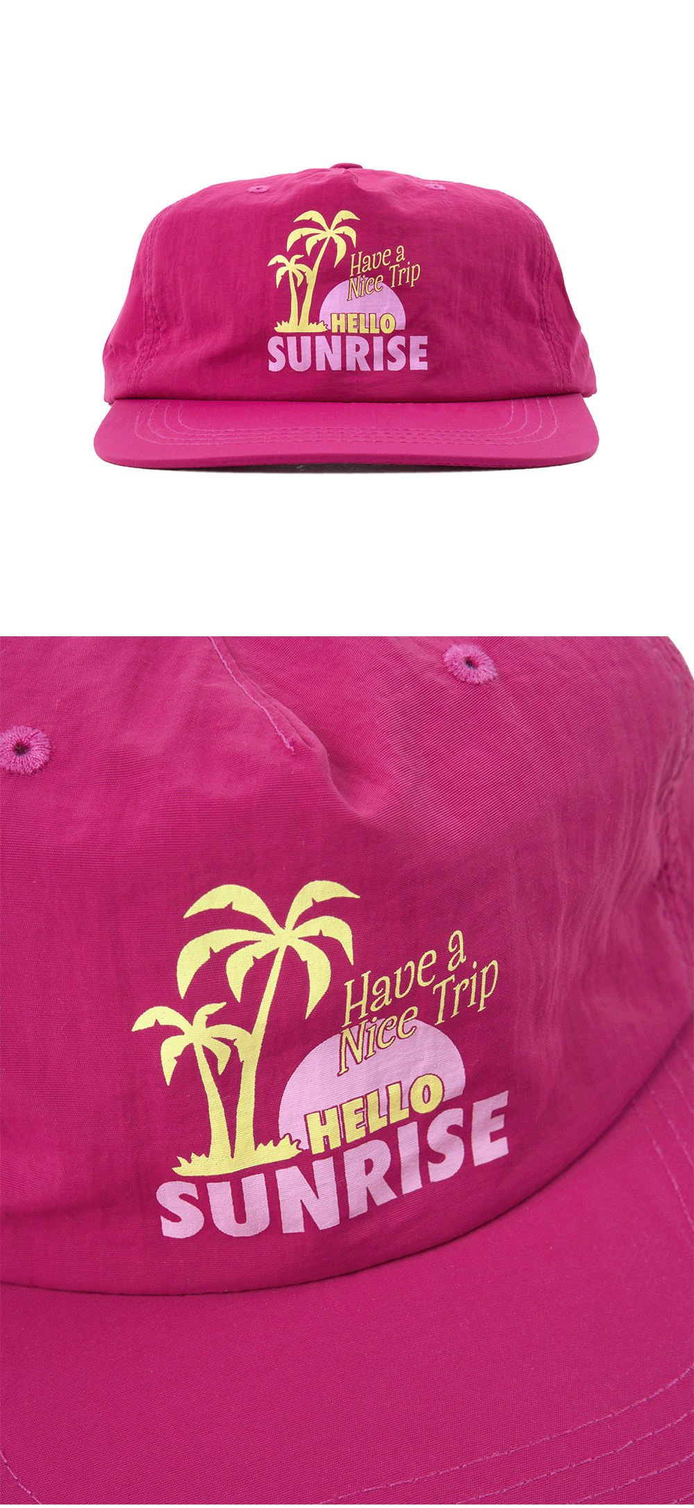 헬로선라이즈 90s 팜 트리 릴랙스 핏 5패널 캡 마젠타 핑크