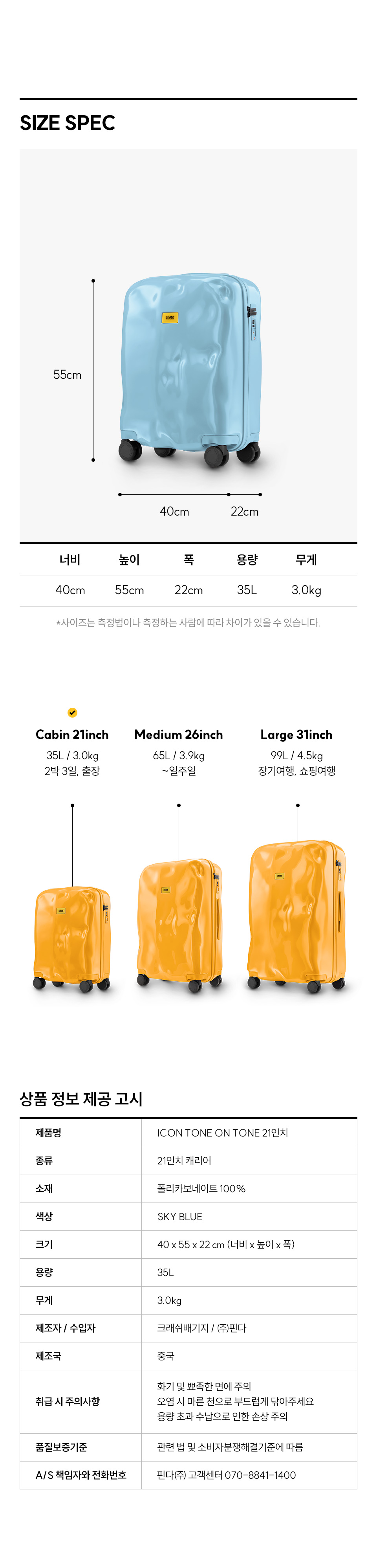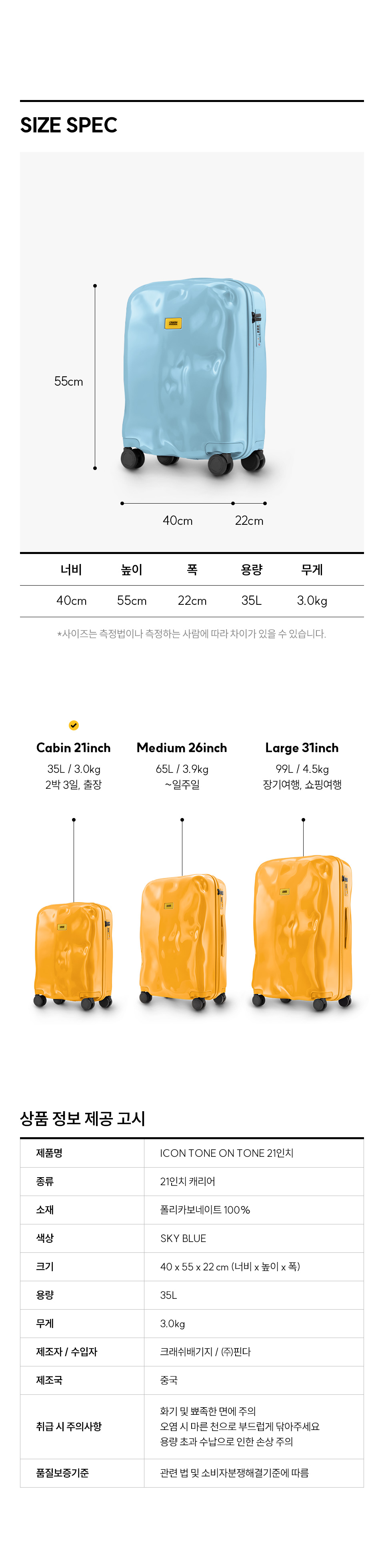 크래쉬배기지 아이콘 톤온톤 캐빈 21인치 캐리어 스카이 블루
