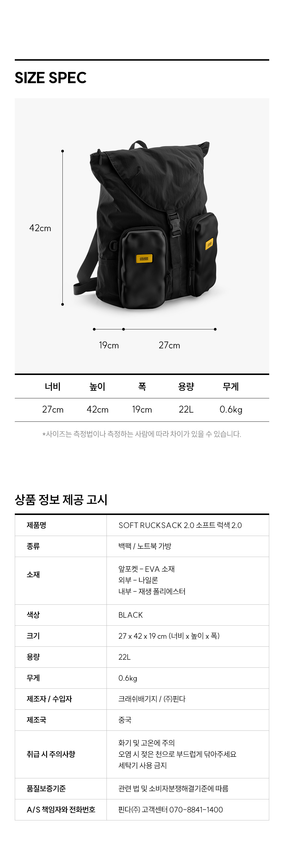 크래쉬배기지 소프트 럭색 2.0 백팩 블랙