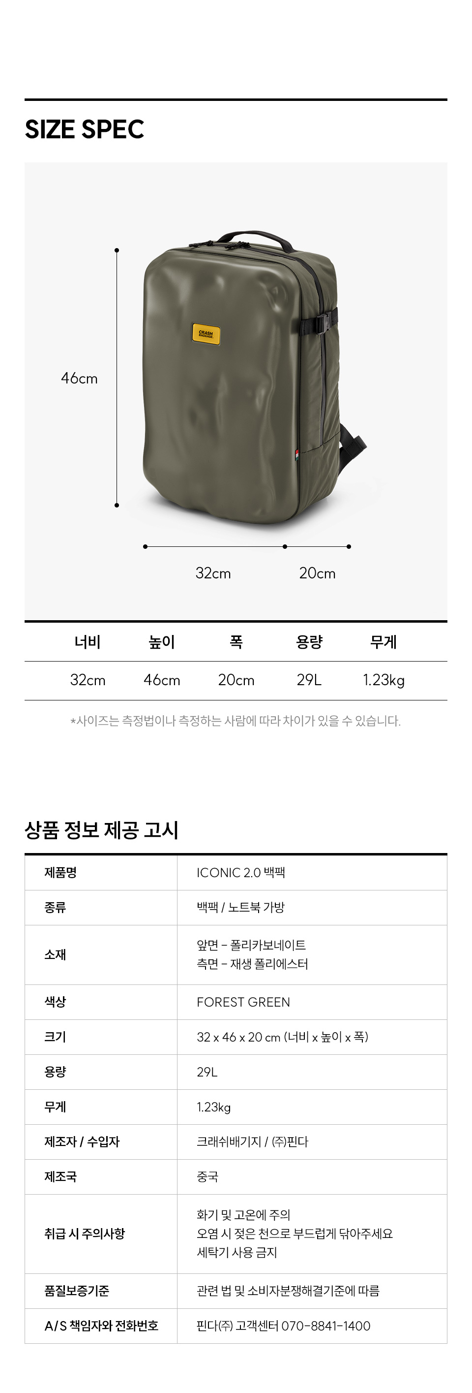 크래쉬배기지 아이코닉 2.0 백팩 포레스트 그린