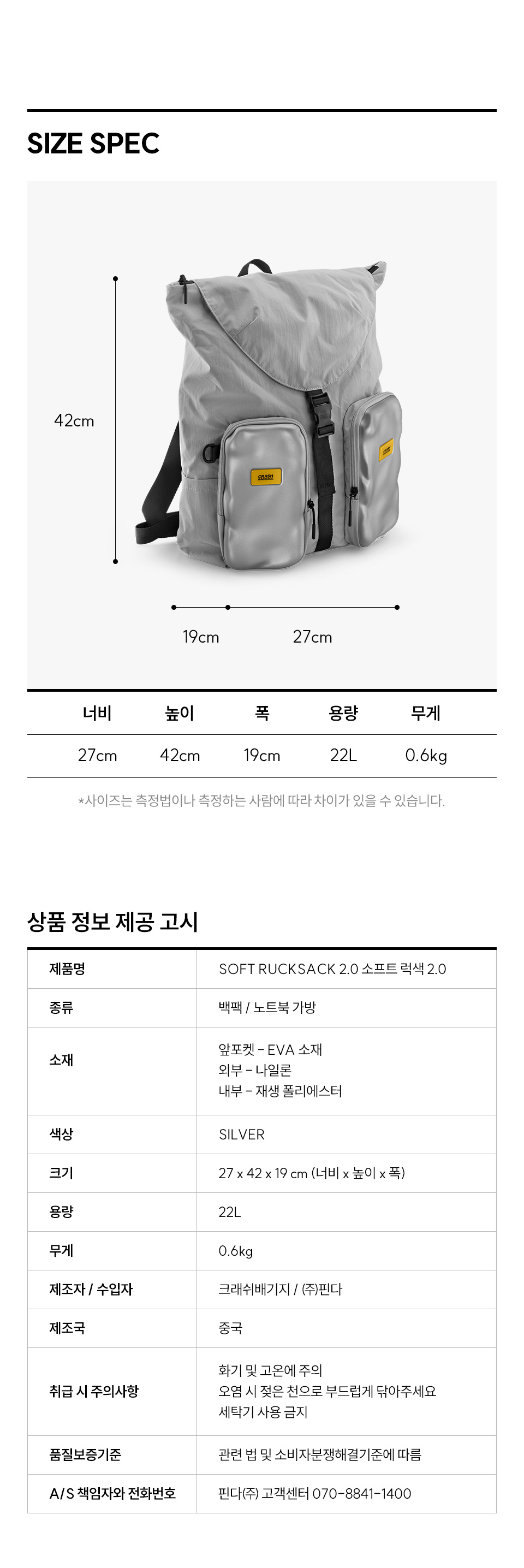 크래쉬배기지 소프트 럭색 2.0 백팩 실버