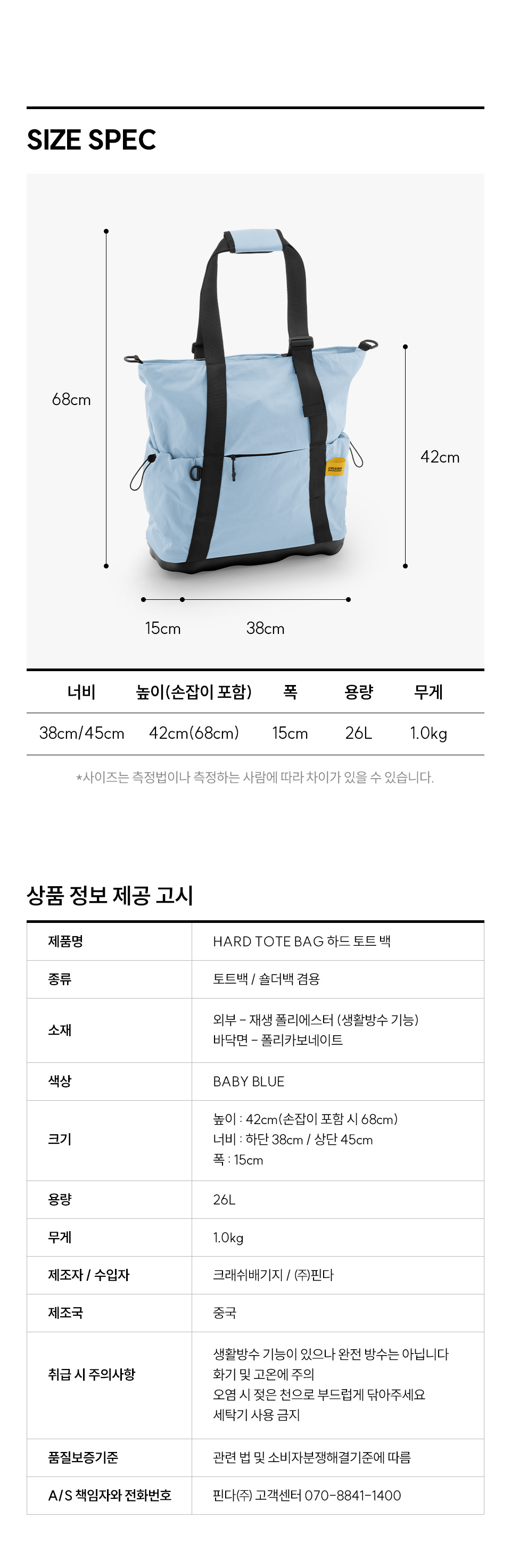 크래쉬배기지 하드 토트백 베이비 블루