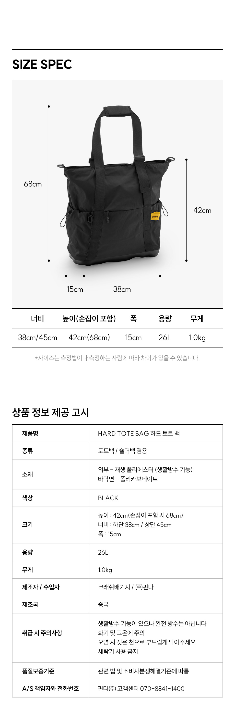크래쉬배기지 하드 토트백 블랙