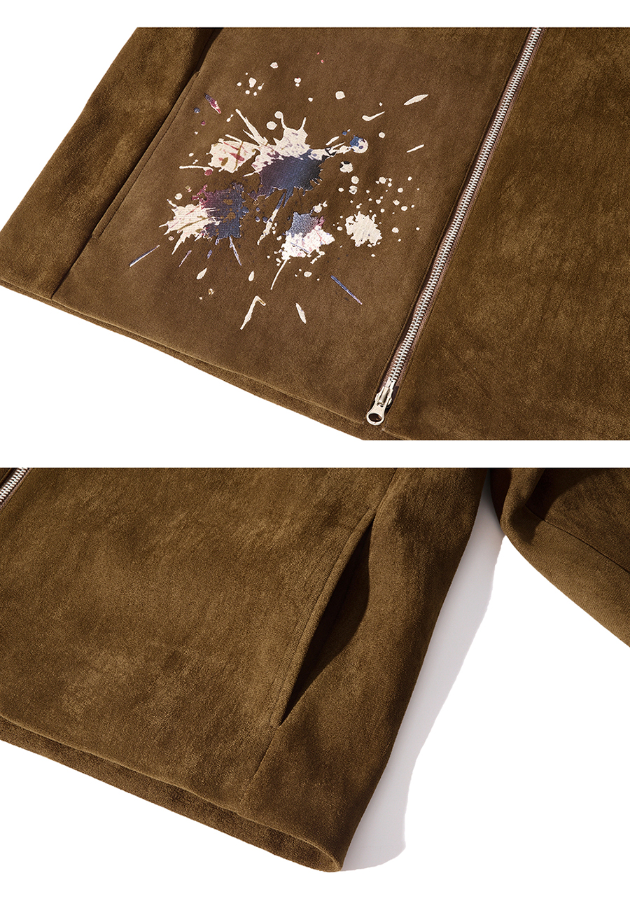 Cord Stain Embroidery Suede Jacket Brown