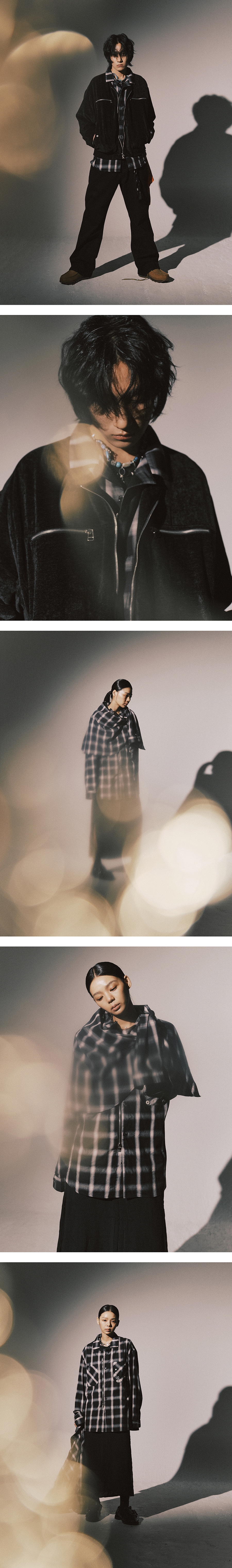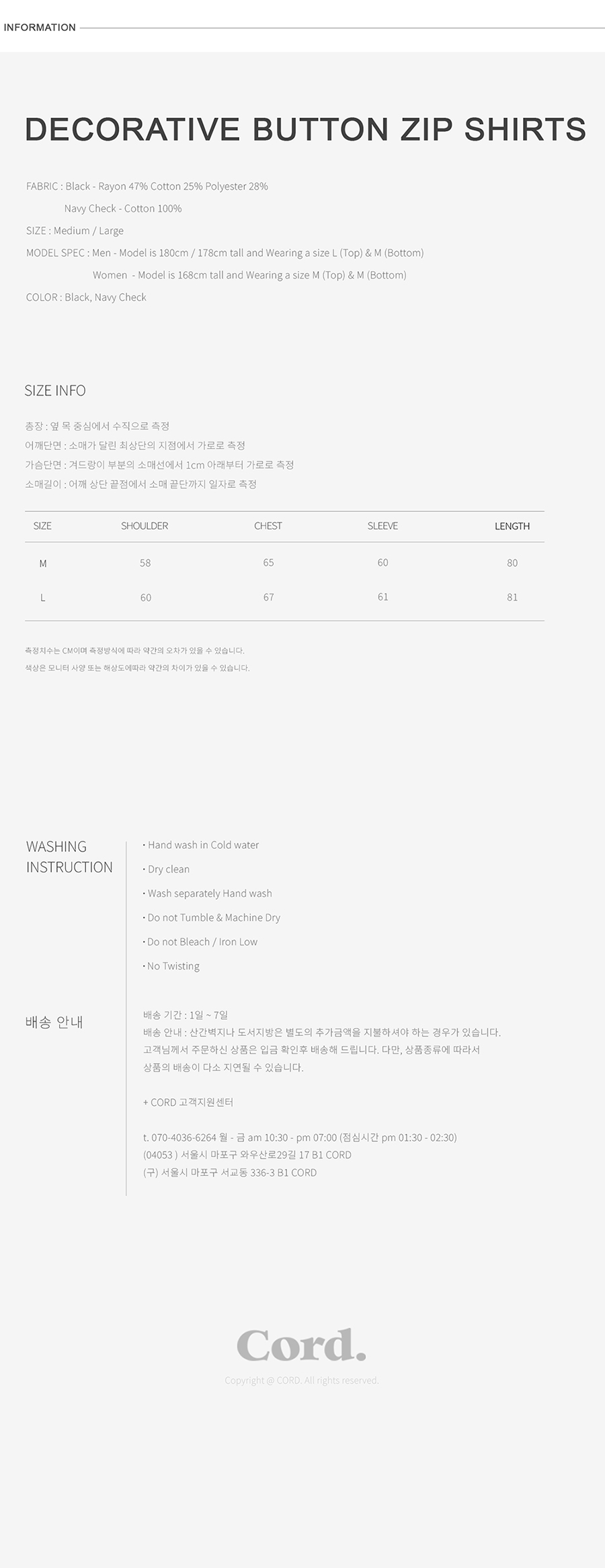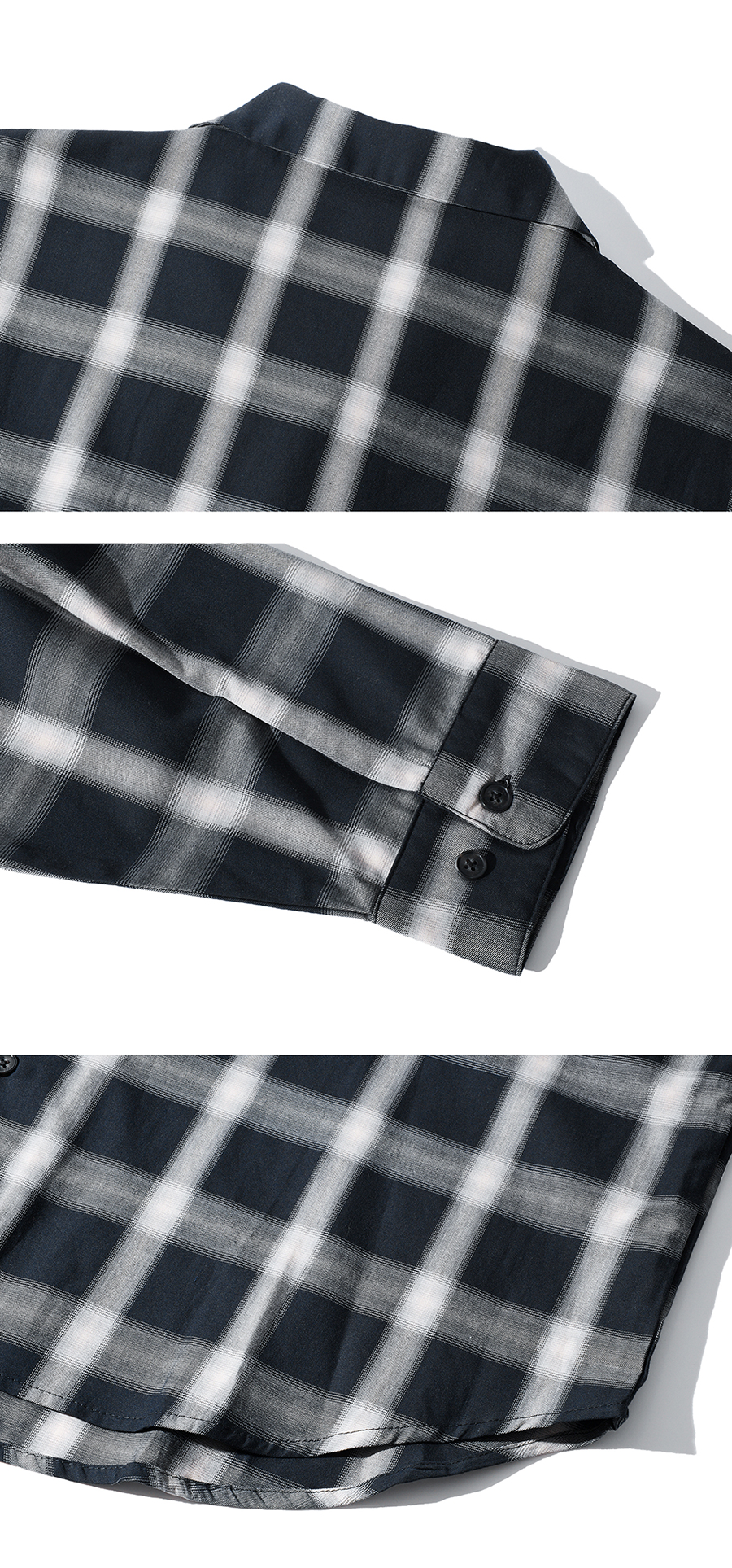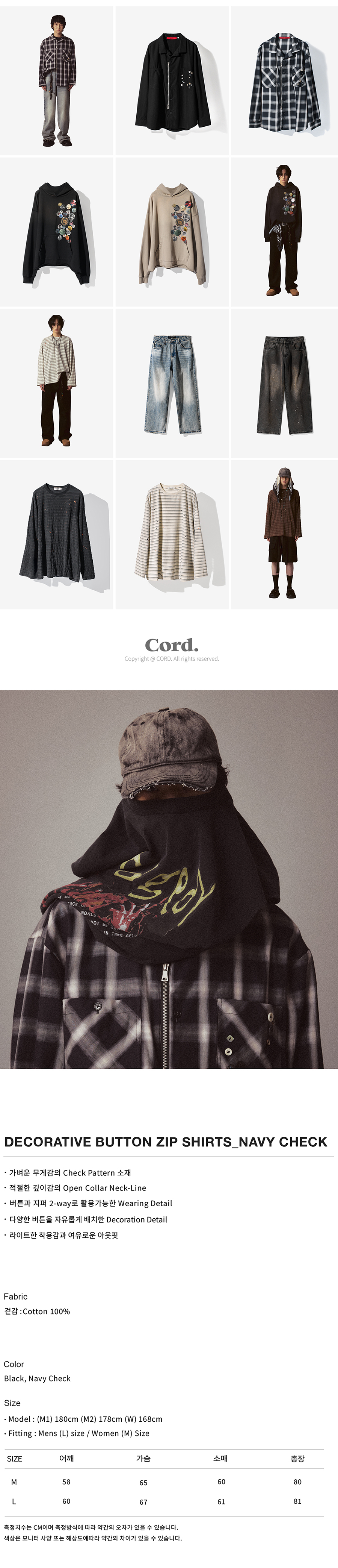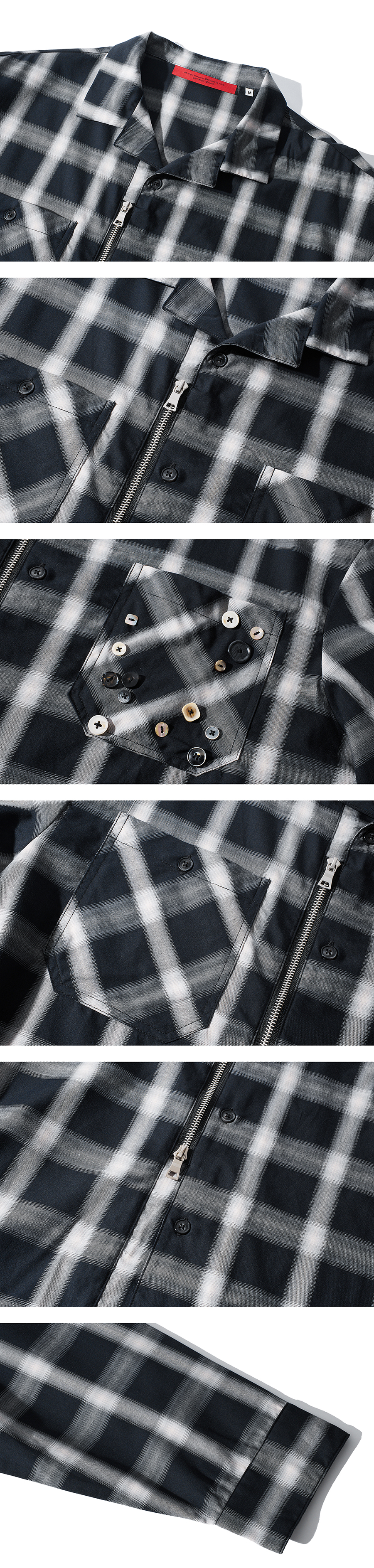 코드 데코레이티브 버튼 지퍼 셔츠 네이비 체크
