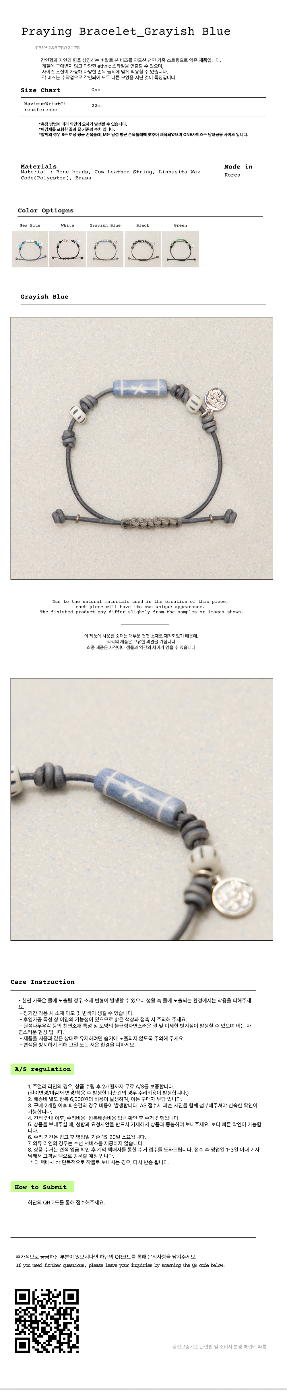 토우토우아카이브 프레잉 팔찌 그레이시 블루