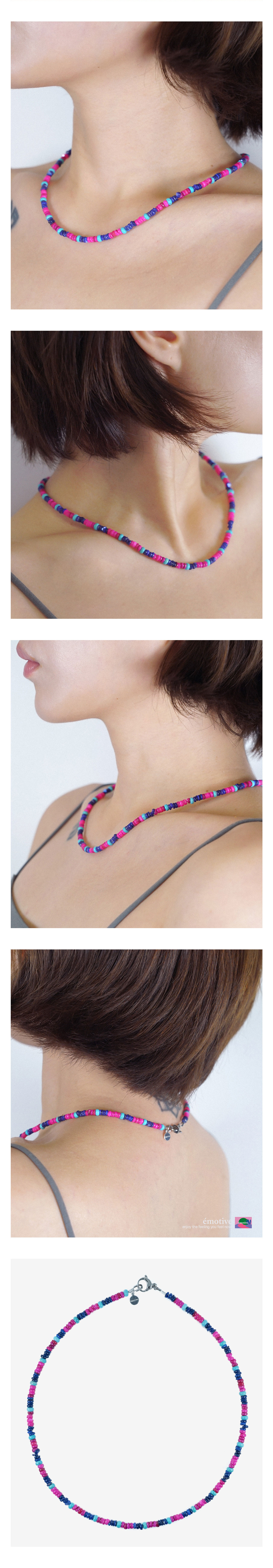 자개 + 하울라이트 원석 캐주얼하고 키치한 무드 연출 - Material : 자개+원석+surgical - Size : 모델 사이즈 M 착용 / 자개 4mm / 하울라이트 4.5mm