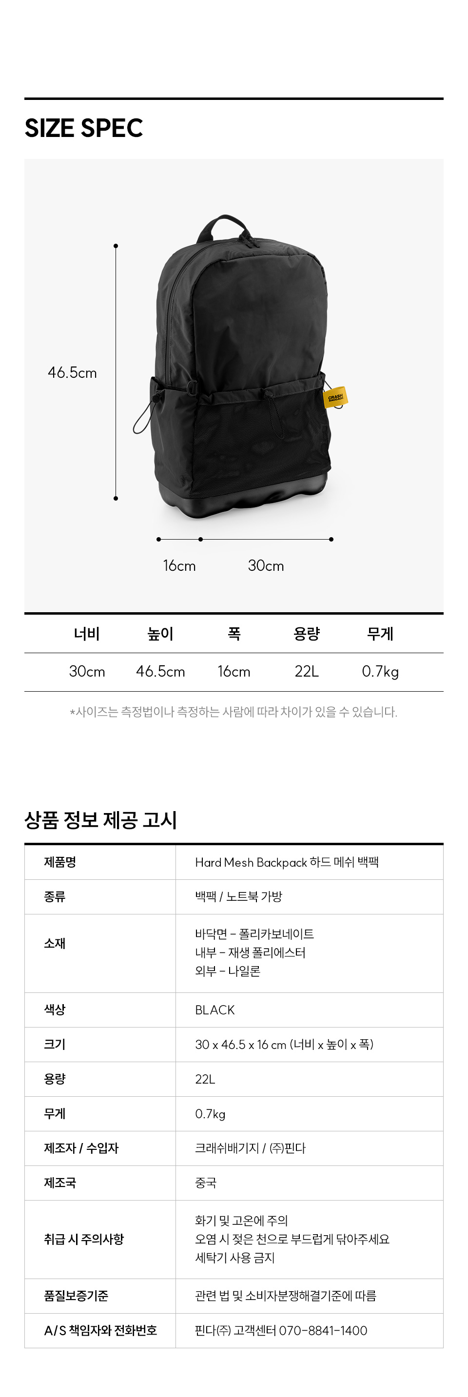 크래쉬배기지 하드 메쉬 백팩 블랙