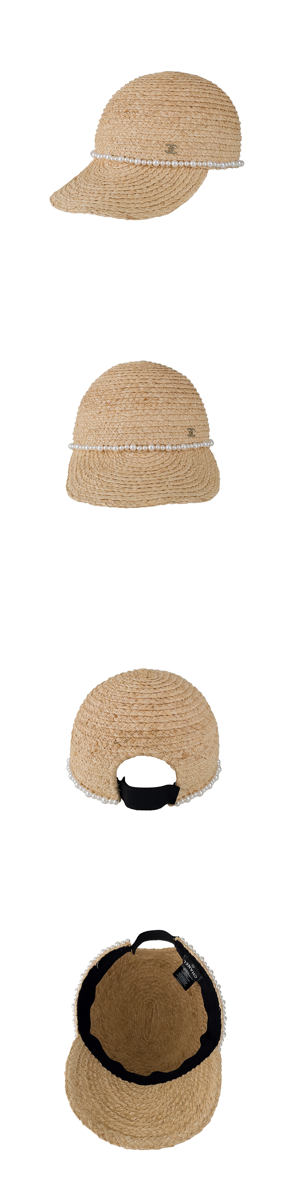 샤넬 23M 코코비치 진주장식 라피아 캡 내츄럴