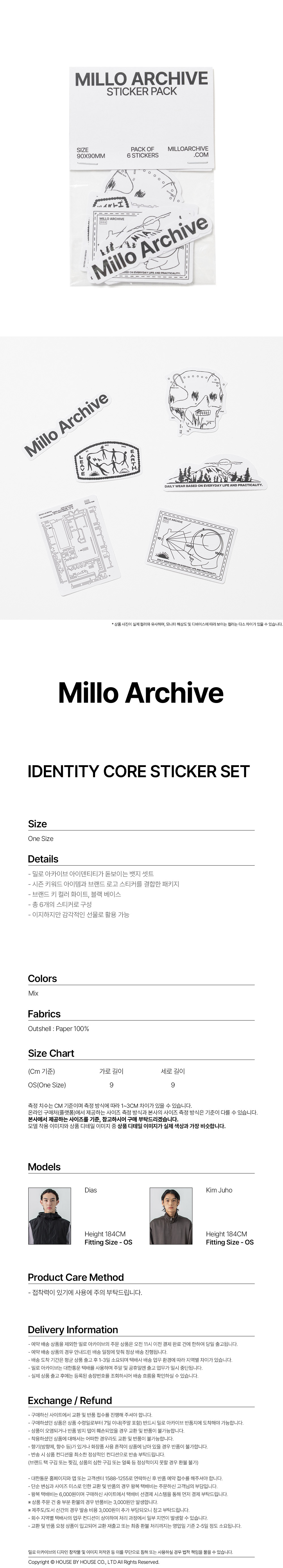밀로 아카이브 아이덴티티 코어 스티커 셋트 믹스