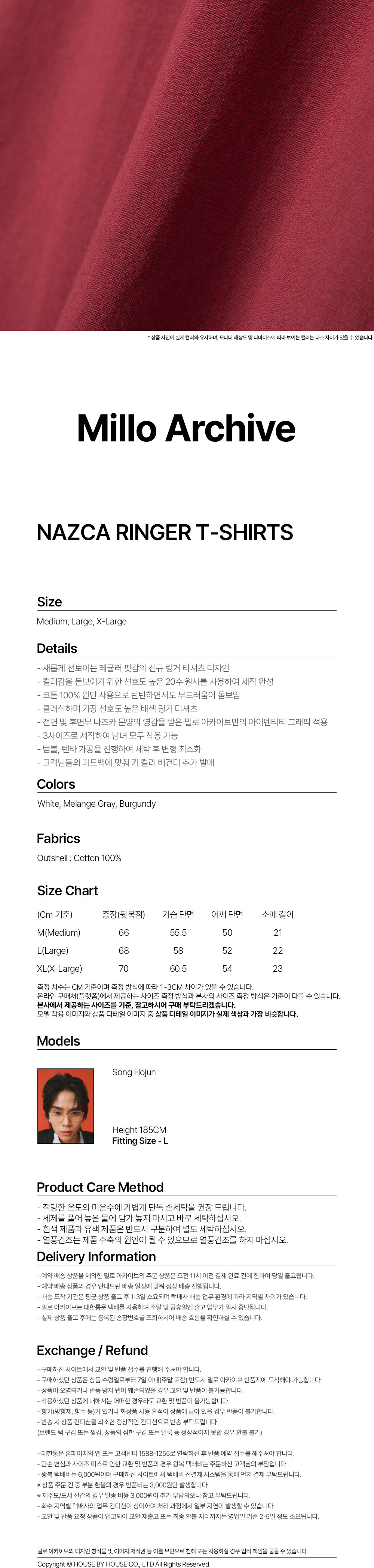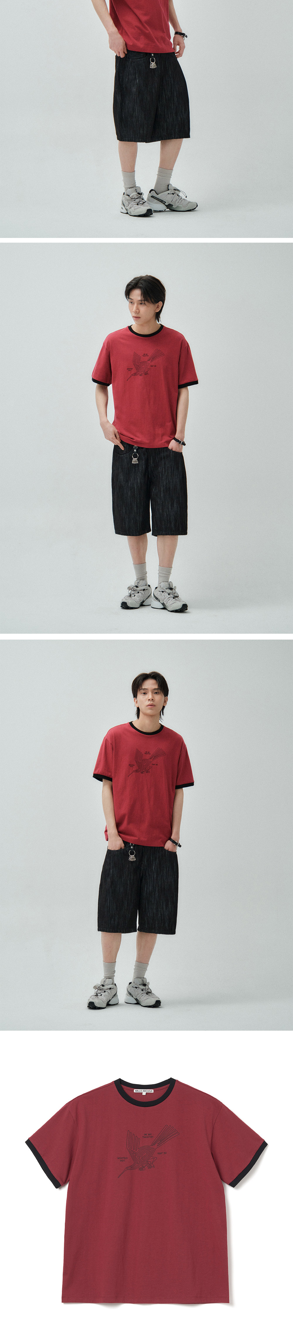 밀로 아카이브 나즈카 링거 티셔츠 버건디