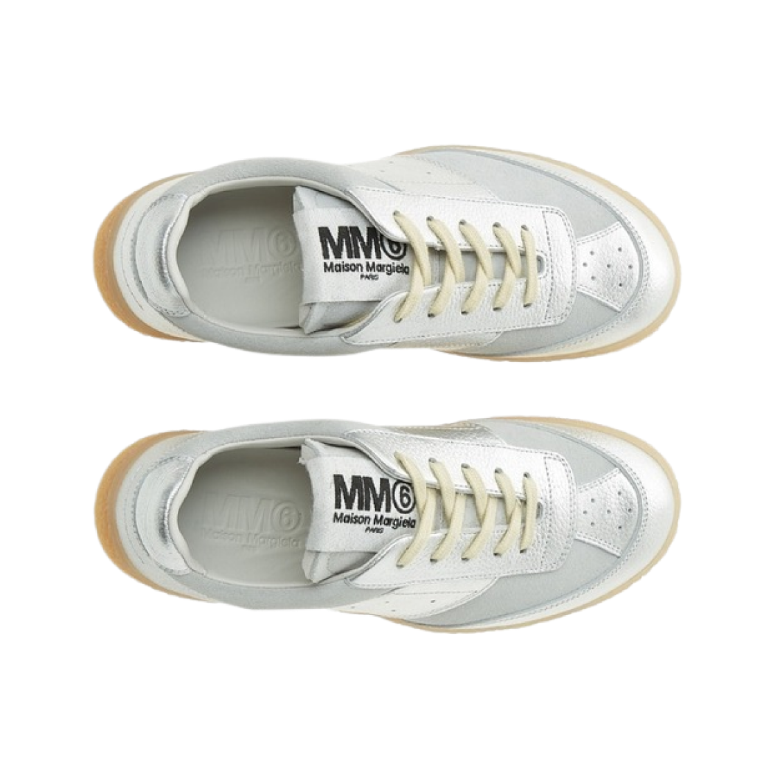 (W) MM6 Maison Margiela Calf Leather Suede Rubber Sneakers Silver