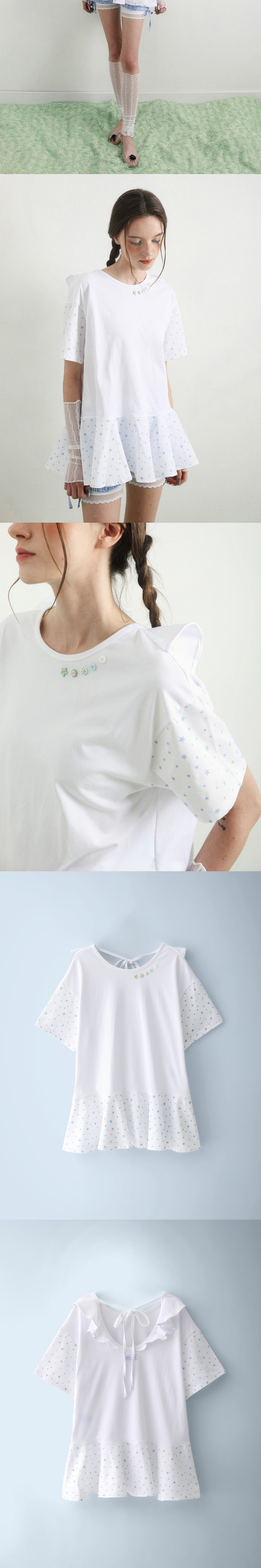 [SIZE] FREE : 총장(옆목) 71 / 가슴 53 / 어깨 49.5 / 소매 18.5(cm) *모델 착용 사이즈 : FREE *모델 : 신장 172 / 가슴 77 / 허리 61 / 힙 84 (cm) *측정방법 및 소재에 따라 1~2cm 차이가 있을 수 있습니다. *화면 해상도에 따라 사진과 실제 제품의 색감 차이가 있을 수 있습니다. [FABRIC] Cotton 73% ,Polyester 27% [LAUNDRY] 드라이클리닝 권장, 단독 찬물 손세탁 권장 통풍이 잘되는 곳에 평평하게 말려주세요 건조기 사용 지양(고온 수축 주의) Visual Suspect / Made in Korea 하단 상세페이지 참조
