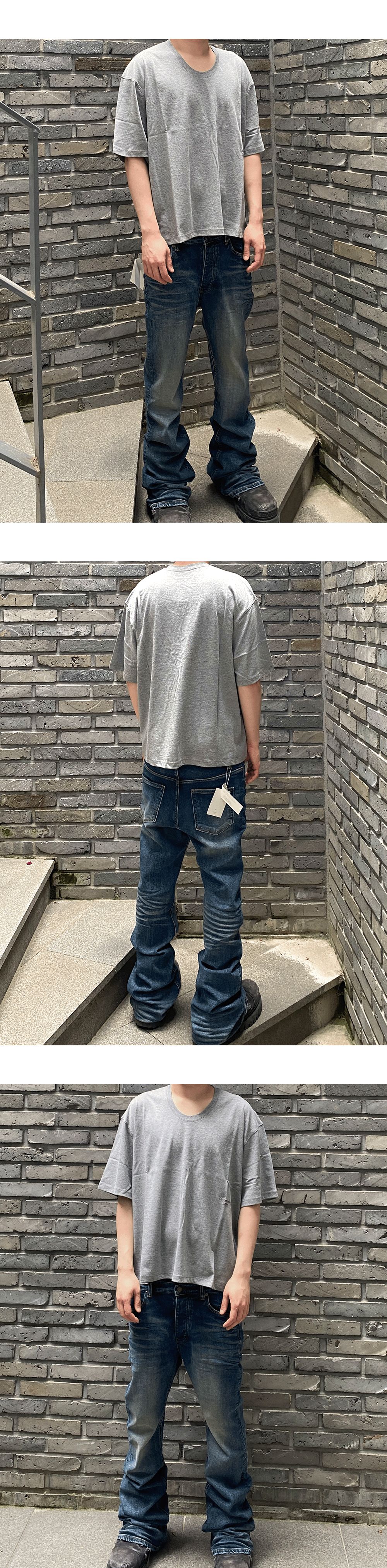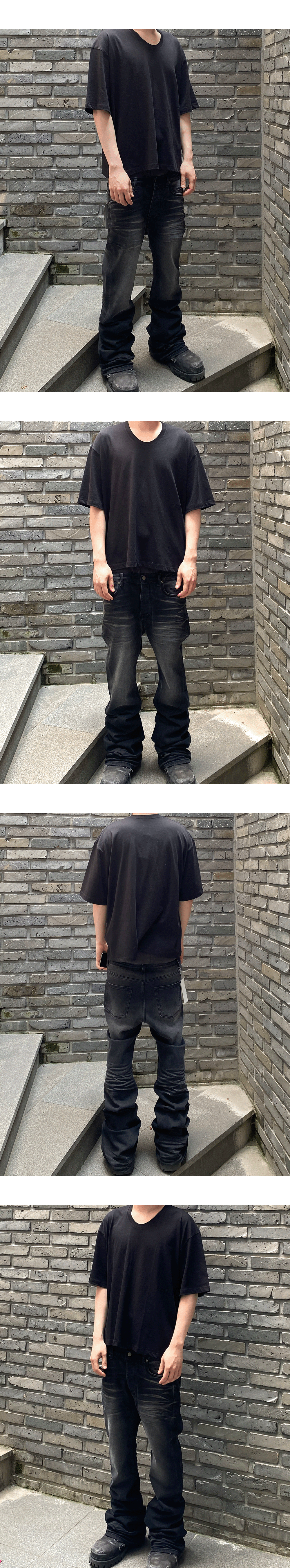 언더마이카 무.114 오리지널 로고 워시드 슬림 플레어 진 워시드 블랙
