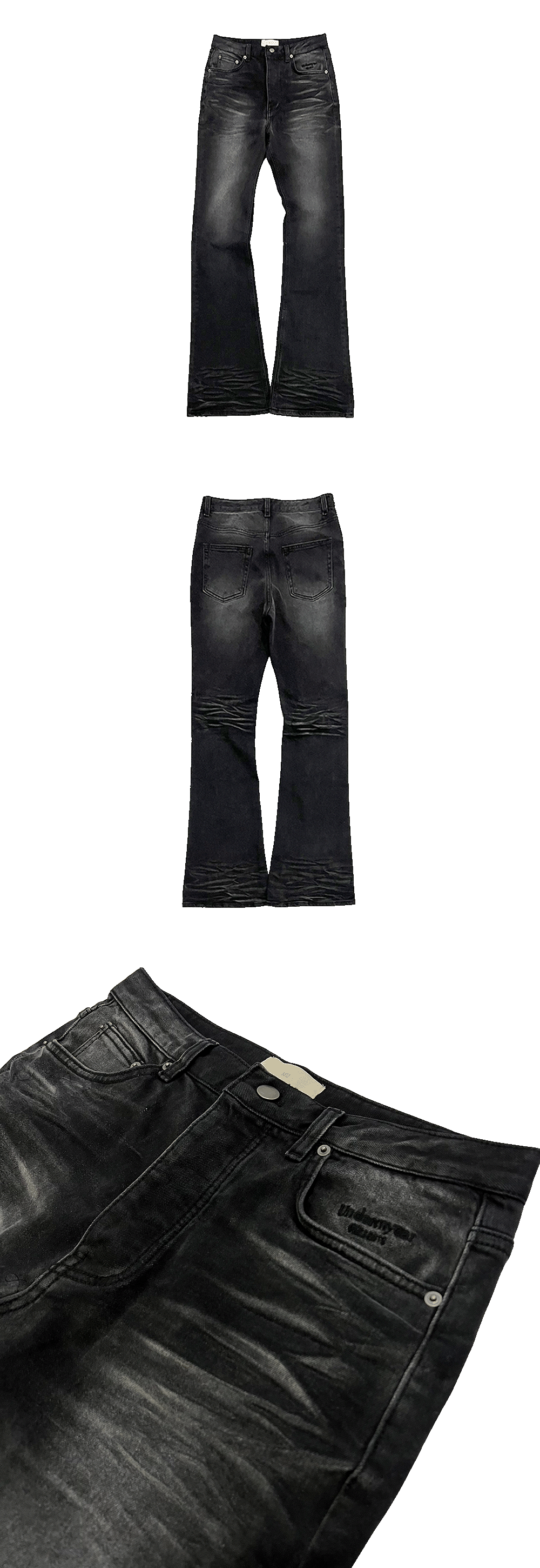 Undermycar Mu.114 Original Logo Washed Slim Flare Jeans Washed Black