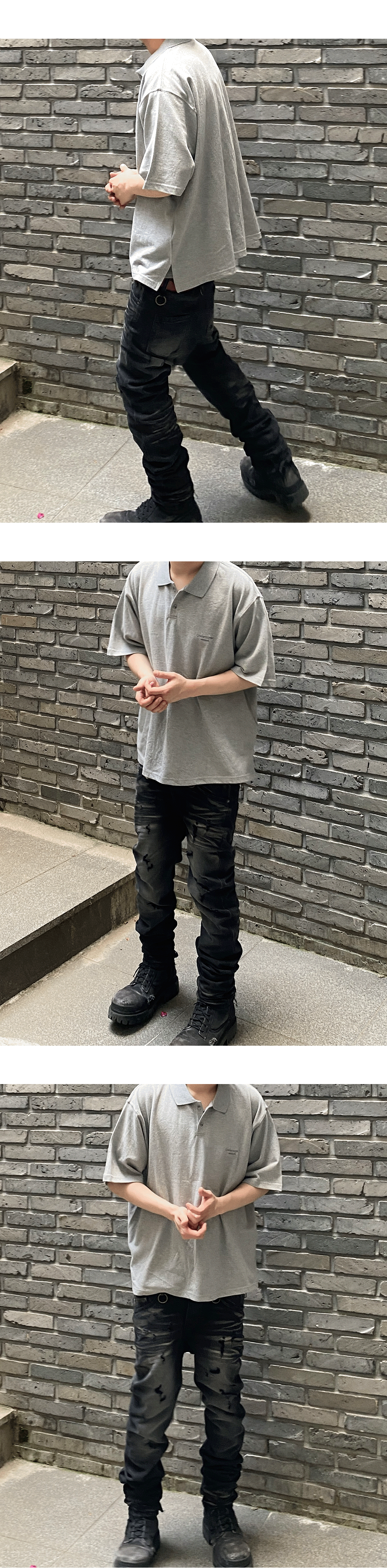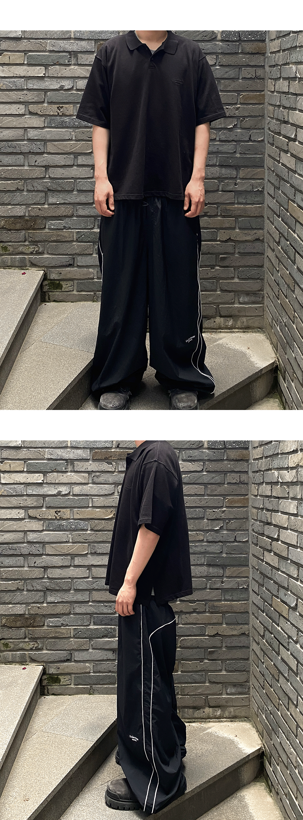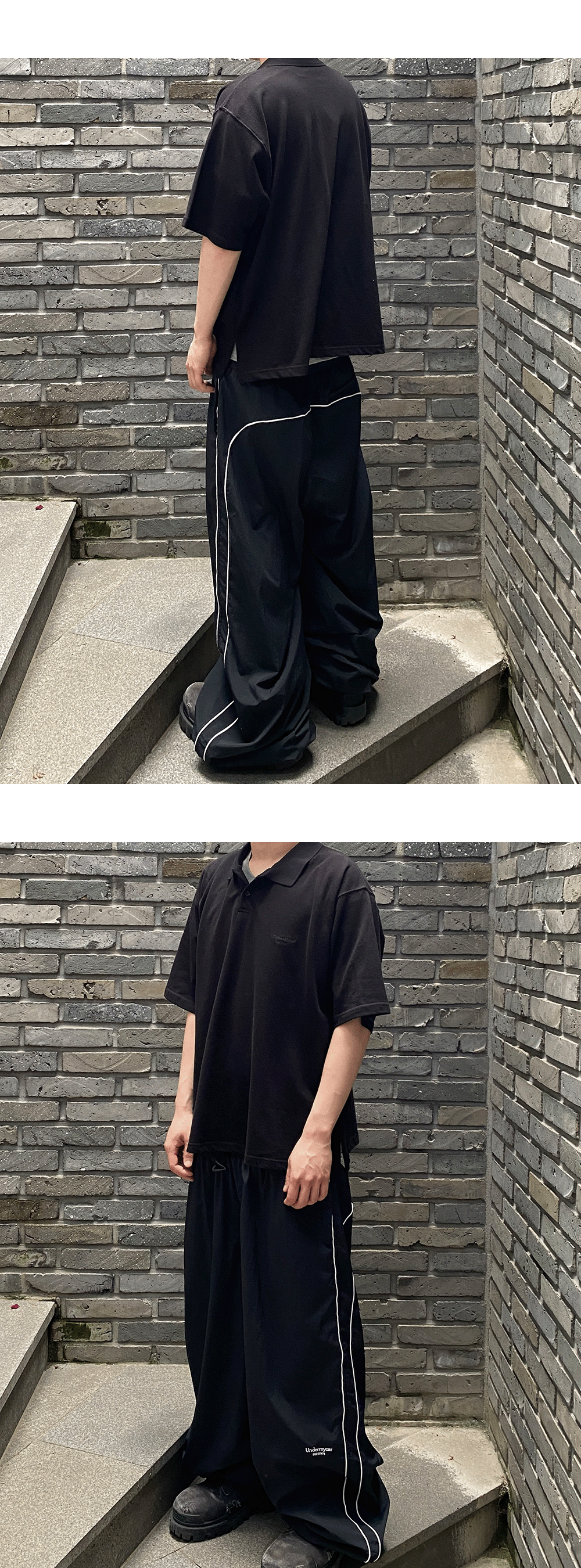 언더마이카 무.125 오리지널 로고 오버사이즈 크롭 PK 셔츠 블랙