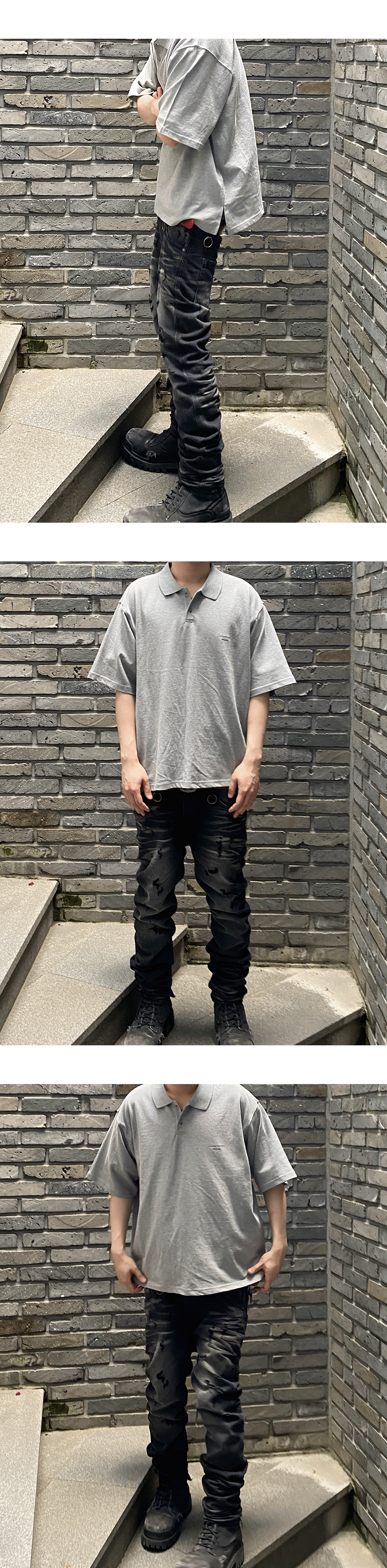 언더마이카 무.125 오리지널 로고 오버사이즈 크롭 PK 셔츠 멜란지 그레이