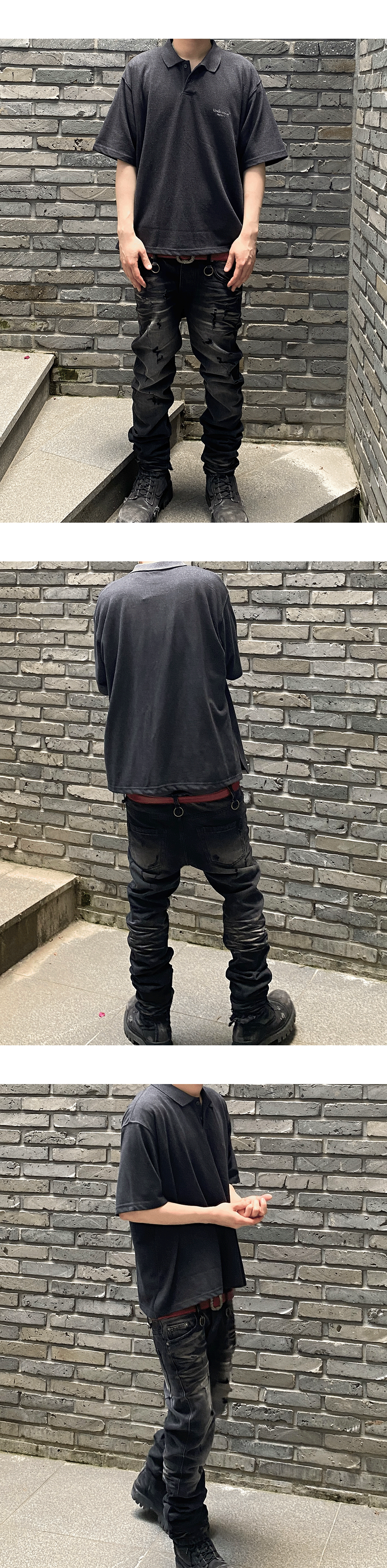 Undermycar Mu.125 Original Logo Oversized Crop PK Shirts Charcoal