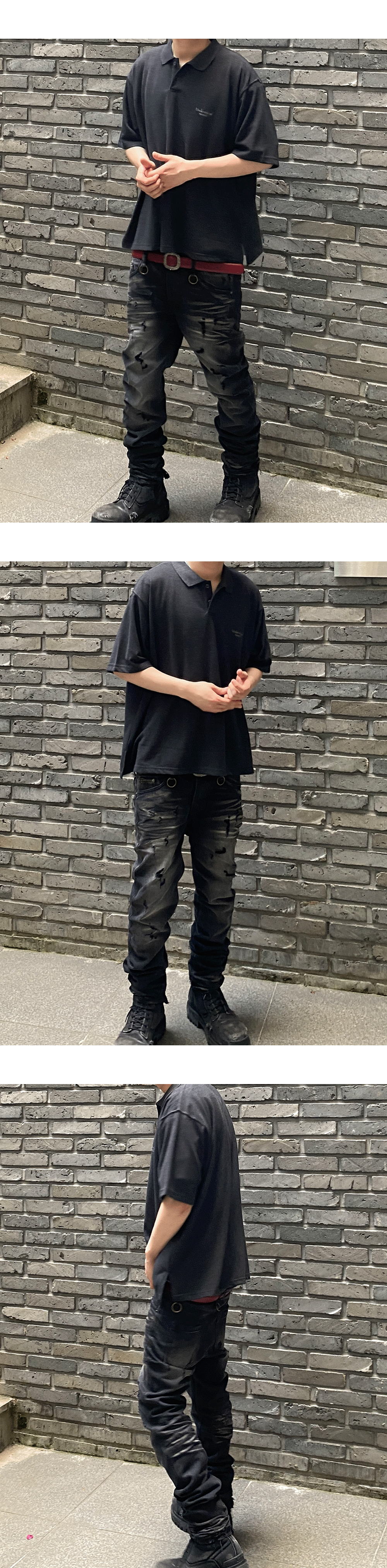 언더마이카 무.125 오리지널 로고 오버사이즈 크롭 PK 셔츠 차콜