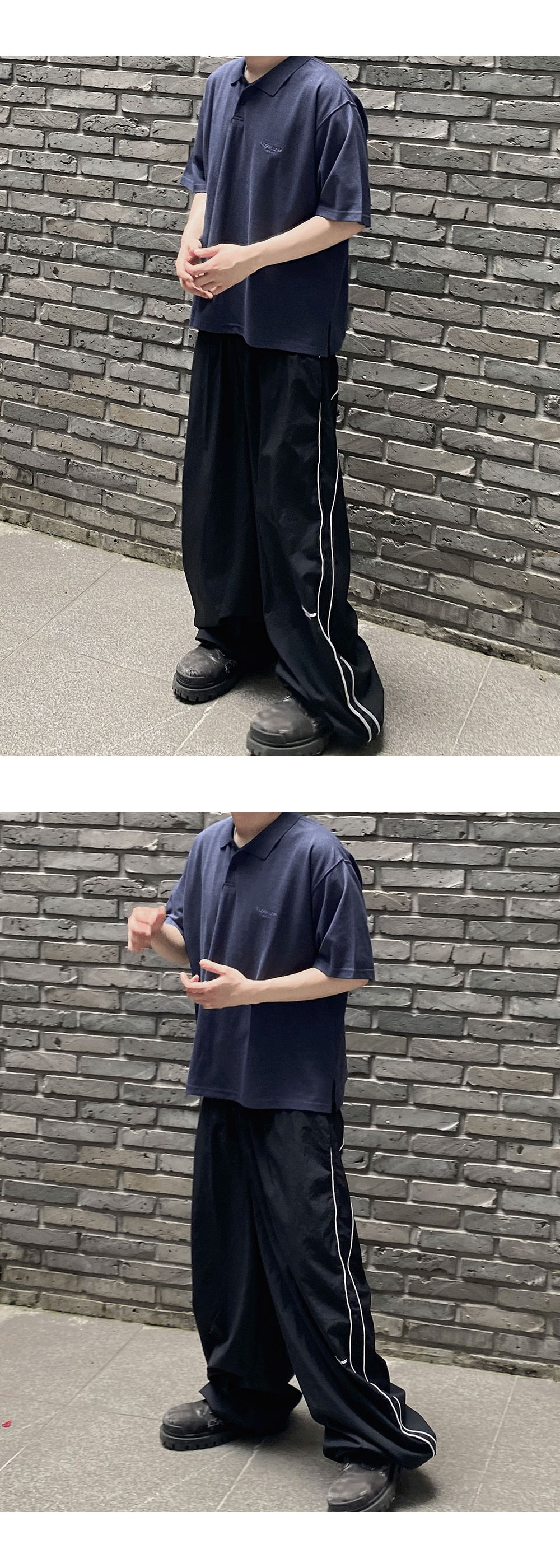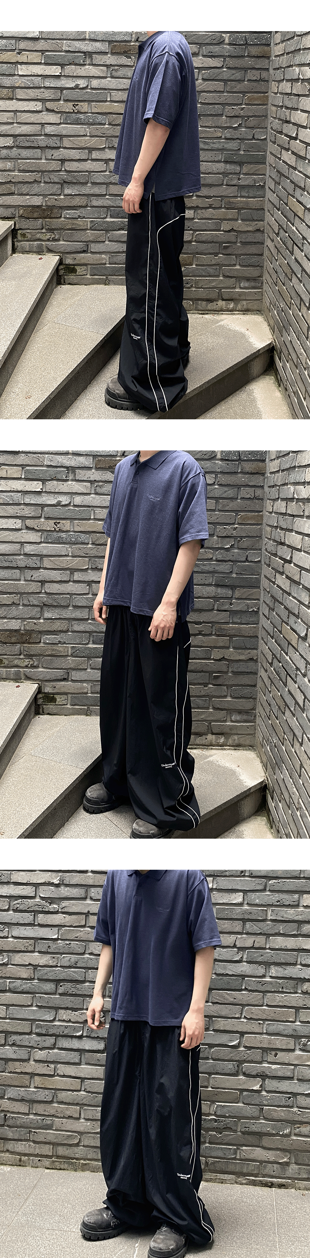 언더마이카 무.125 오리지널 로고 오버사이즈 크롭 PK 셔츠 네이비