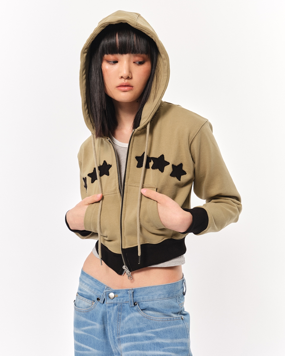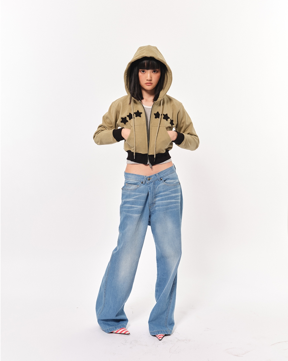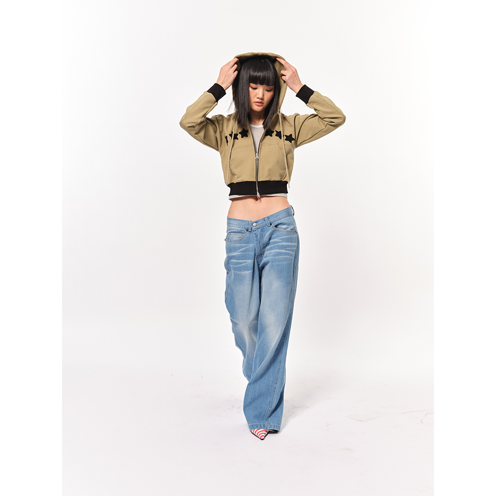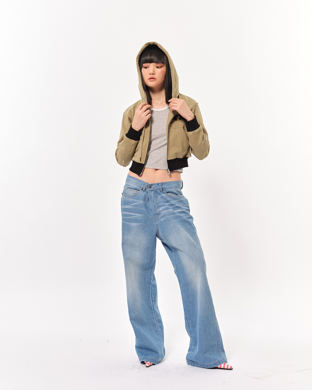 블루 선플라워 에센셜 더티 워시드 투웨이 크롭 후드집업