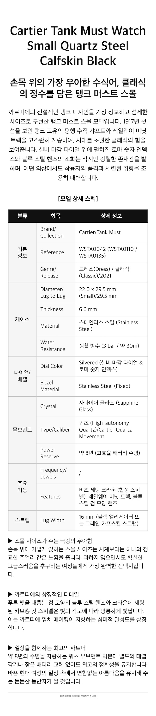 까르띠에 탱크 머스트 워치 스몰 쿼츠 스틸 카프스킨 블랙