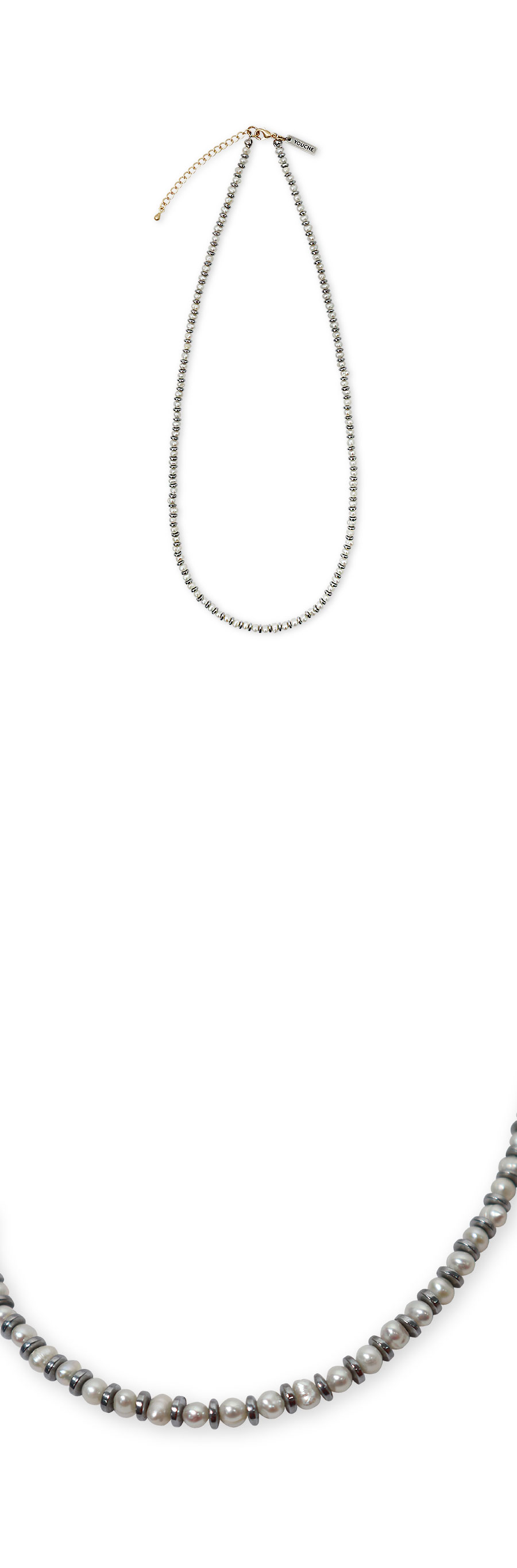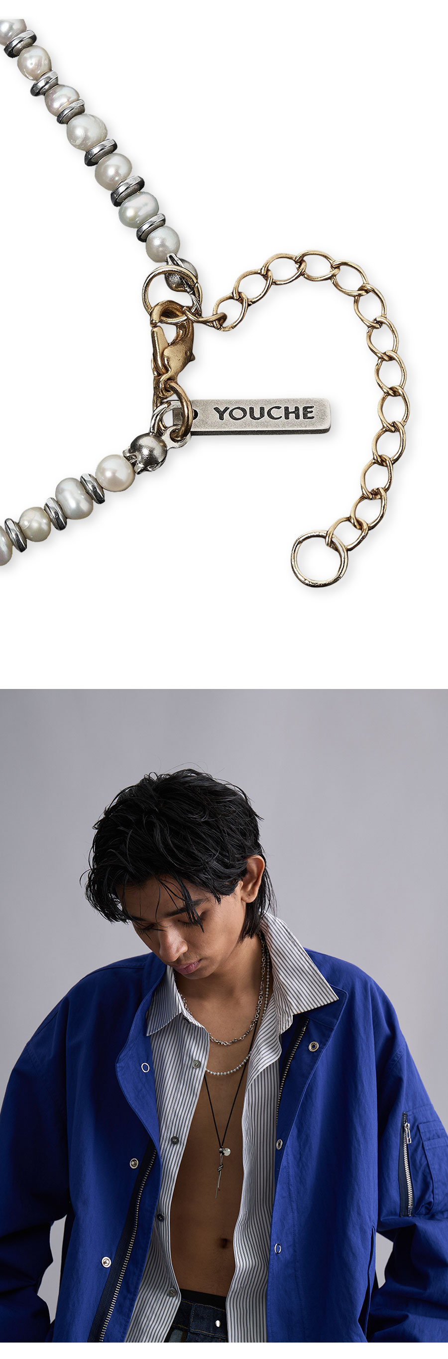 Material Outshell 1 : Natural pearl Outshell 2 : Hematite Colour : Oyster - Natural pearl & Hematite - Adjustable chain - Gold detail finishing - Youche logo pendant 취급시 주의사항 *땀이나 물, 습기에 노출시 변색이 될 우려가 있습니다. *부드러운 천으로 관리해주시면 새제품처럼 오래 사용하실 수 있습니다. *장기간 보관시 밀폐된 용기에 보관하시는 것을 추천드립니다.ㅅ