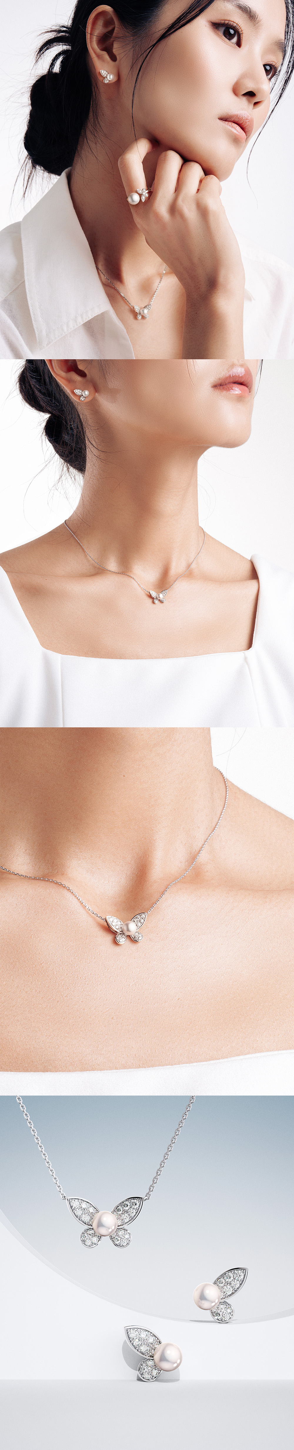 미꼬 모르포 파베 M 아코야 펄 다이아몬드 목걸이 화이트 골드