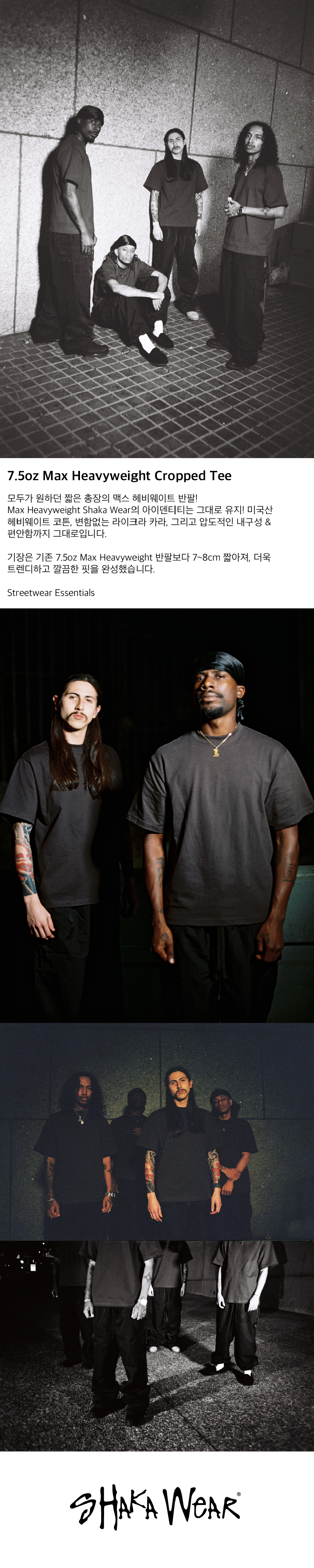 모두가 원하던 짧은 총장의 맥스 헤비웨이트 반팔! Max Heavyweight Shaka Wear의 아이덴티티는 그대로 유지! 미국산 헤비웨이트 코튼, 변함없는 라이크라 카라, 그리고 압도적인 내구성 & 편안함까지 그대로입니다. 기장은 기존 7.5oz Max Heavyweight 반팔보다 7~8cm 짧아져, 더욱 트렌디하고 깔끔한 핏을 완성했습니다. Streetwear Essentials