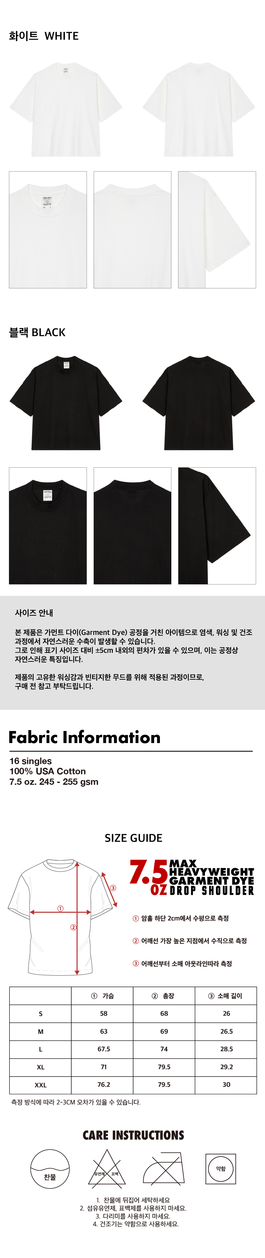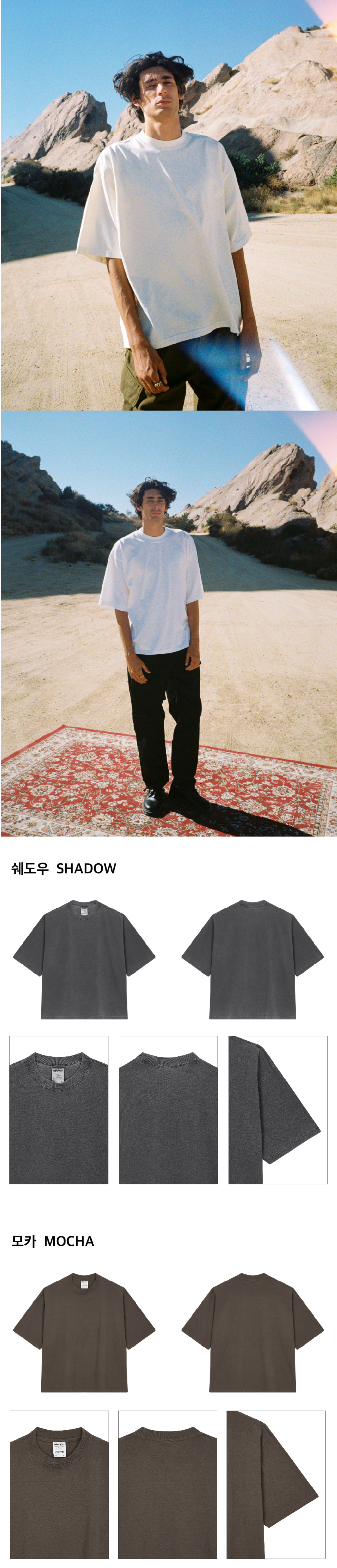 기존 가먼트다이 반팔보다 박시한 핏을 자랑하는 가먼트다이 시리즈의 드롭숄더 버전입니다.