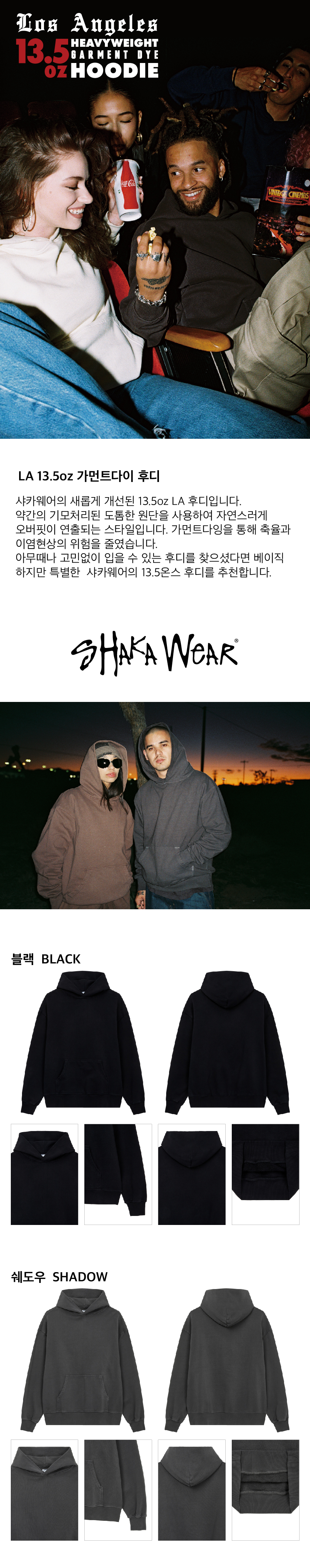 샤카웨어 13.5온스 LA 가먼트다이 후디 모카