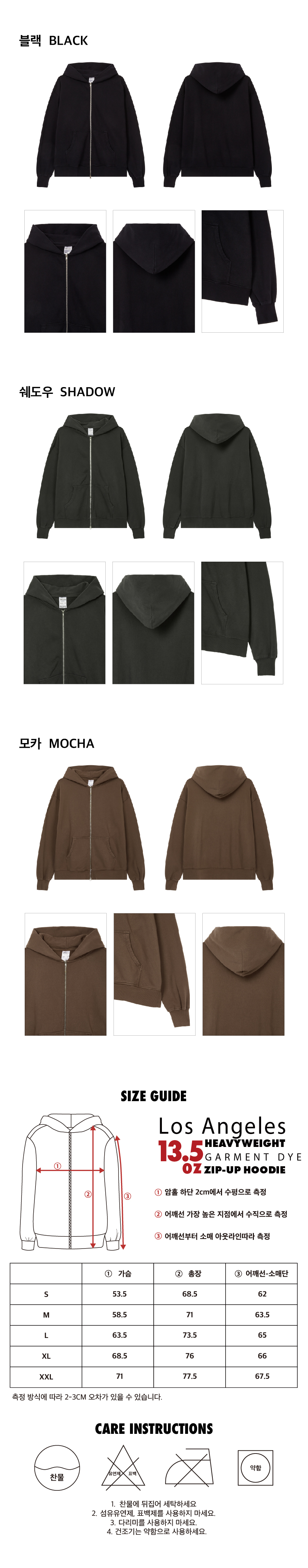 샤카웨어 13.5온스 LA 가먼트다이 더블 집업 후디 블랙