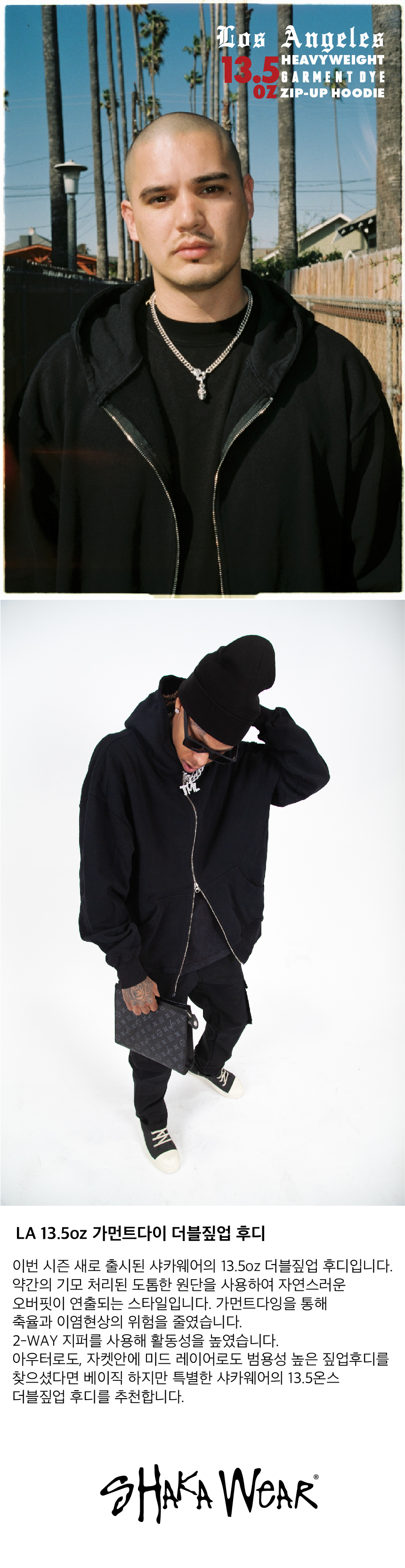 샤카웨어 13.5온스 LA 가먼트다이 더블 집업 후디 쉐도우